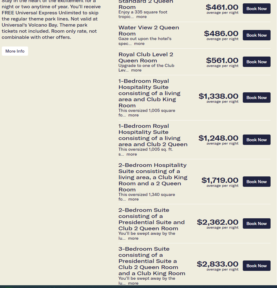 Is that true in suites too? I know it’s $45 per extra adult per night but if you got a 2 bedroom suite is that the case for example? Just curious. Because I am wondering if you called on the phone given the kids suite is like a 2 bedroom suite if it would still apply? It might; I’ve only ever done a kids suite with my kids (HRH and it was GRAND!) and then I’ve also done a King Suite with a connecting room and we were three adults in the connecting room and 2 adults and 2 kids in the King Suite. We did have to pay for the extra adult in the connecting 2 queen room.