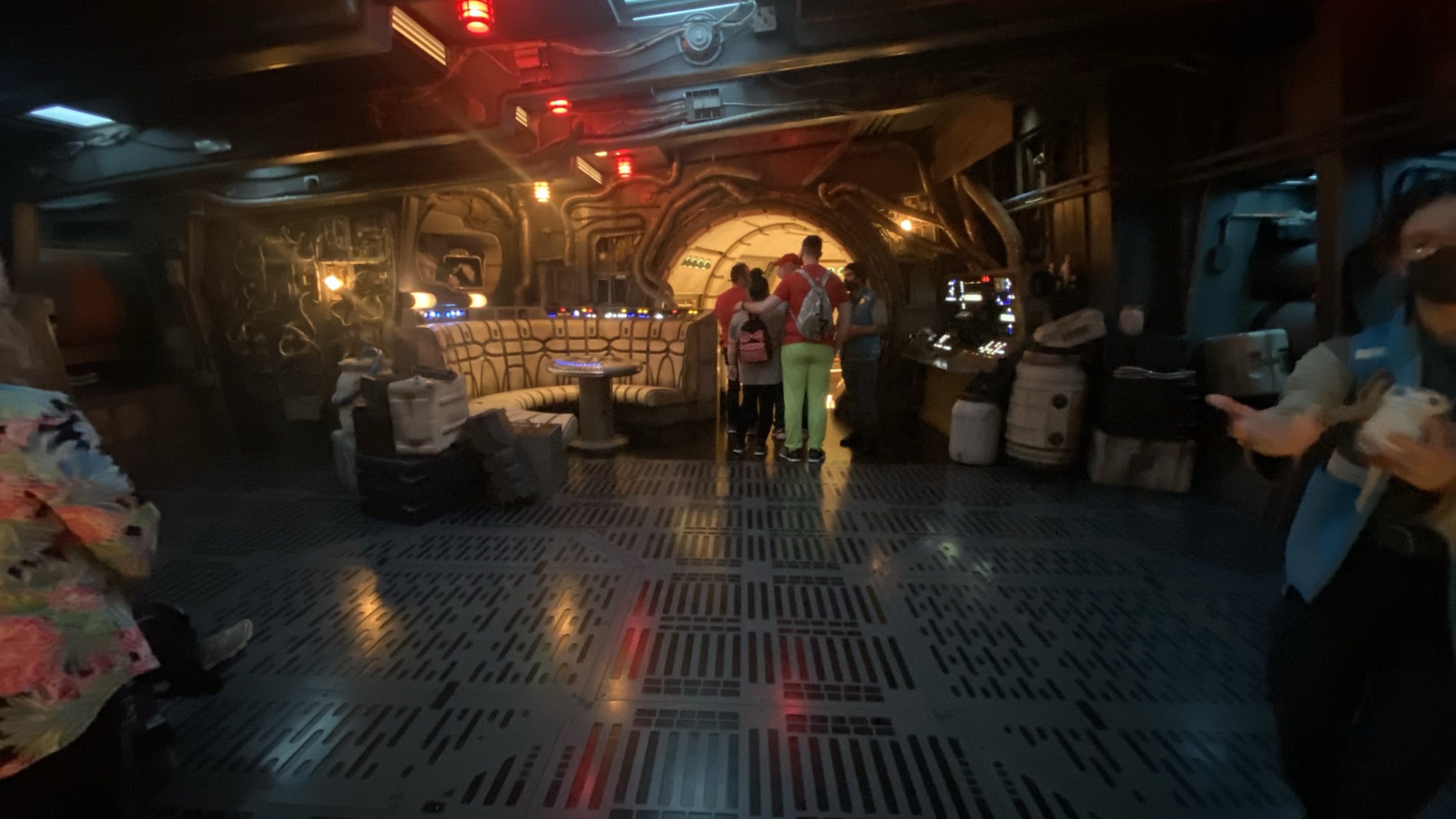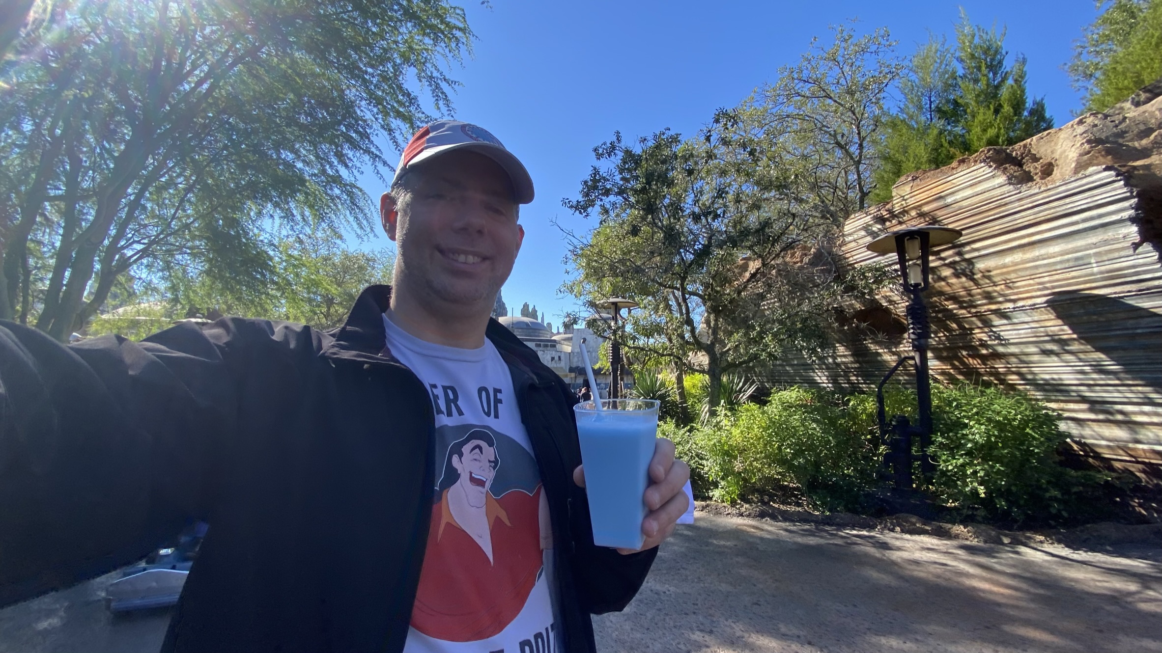 Our plan was to ride TSMM and get breakfast at Woody’s Lunchbox. The line looked pretty long for TSMM, but I convinced B that it would only be like 15 minutes based on the Lines app. It ended up being like 20, but there is so much to look at in that queue it was not a problem. B was the winner of this round, and we were leaving around 10a. Our Woody’s mobile order return time was still 15 minutes away, so we walked into SW:GE for a few minutes. B wanted to take in the details (they skipped it on their last family trip), and I wanted some blue milk. With rum. Did I mention that I ran a half marathon this morning? I deserve alcohol.