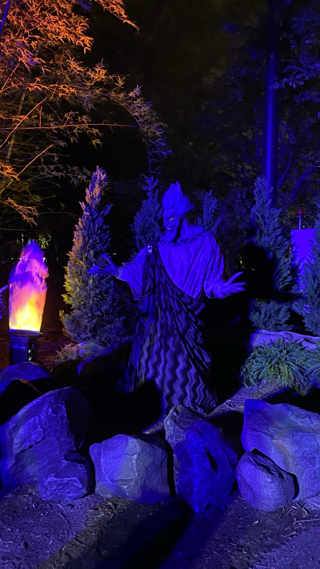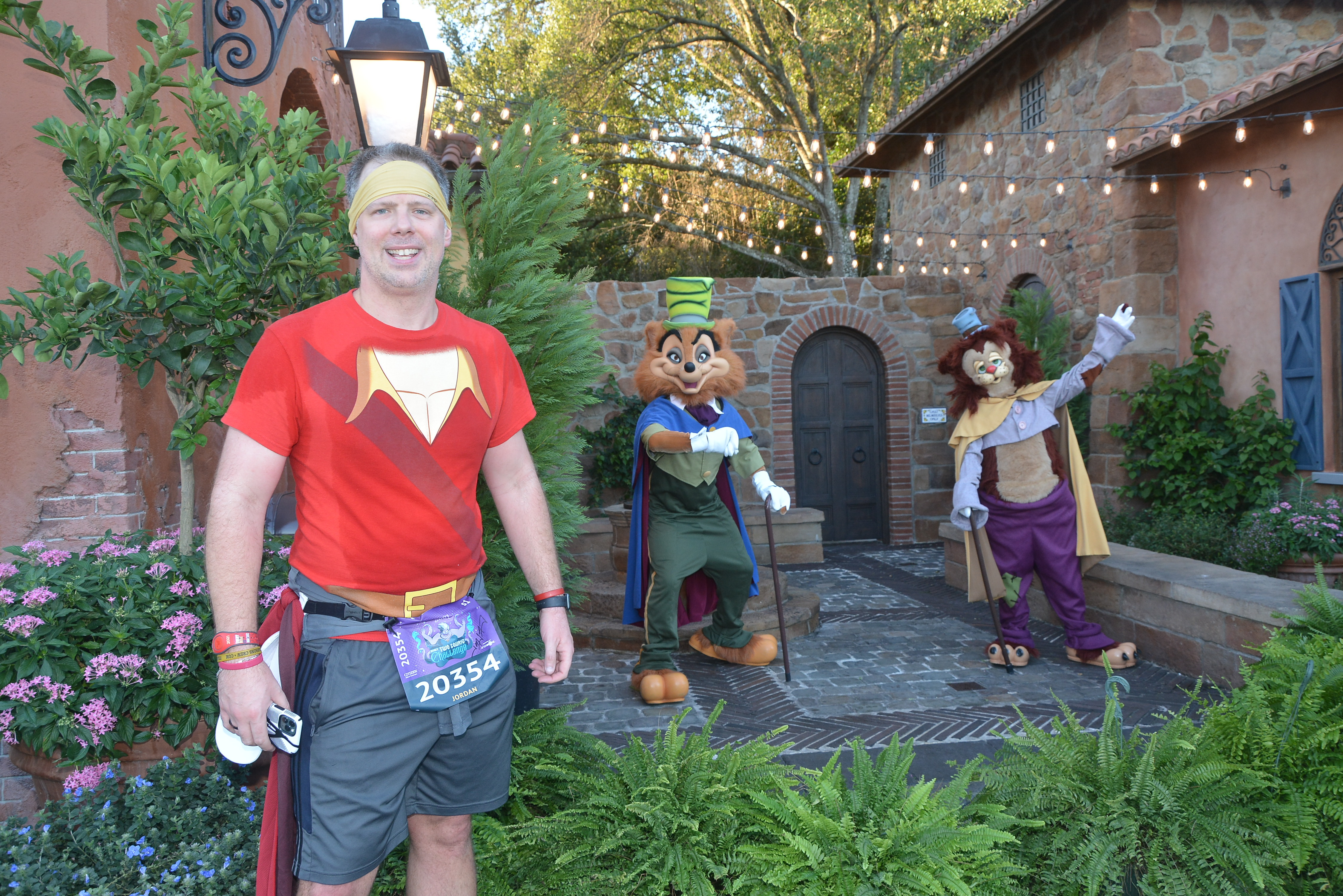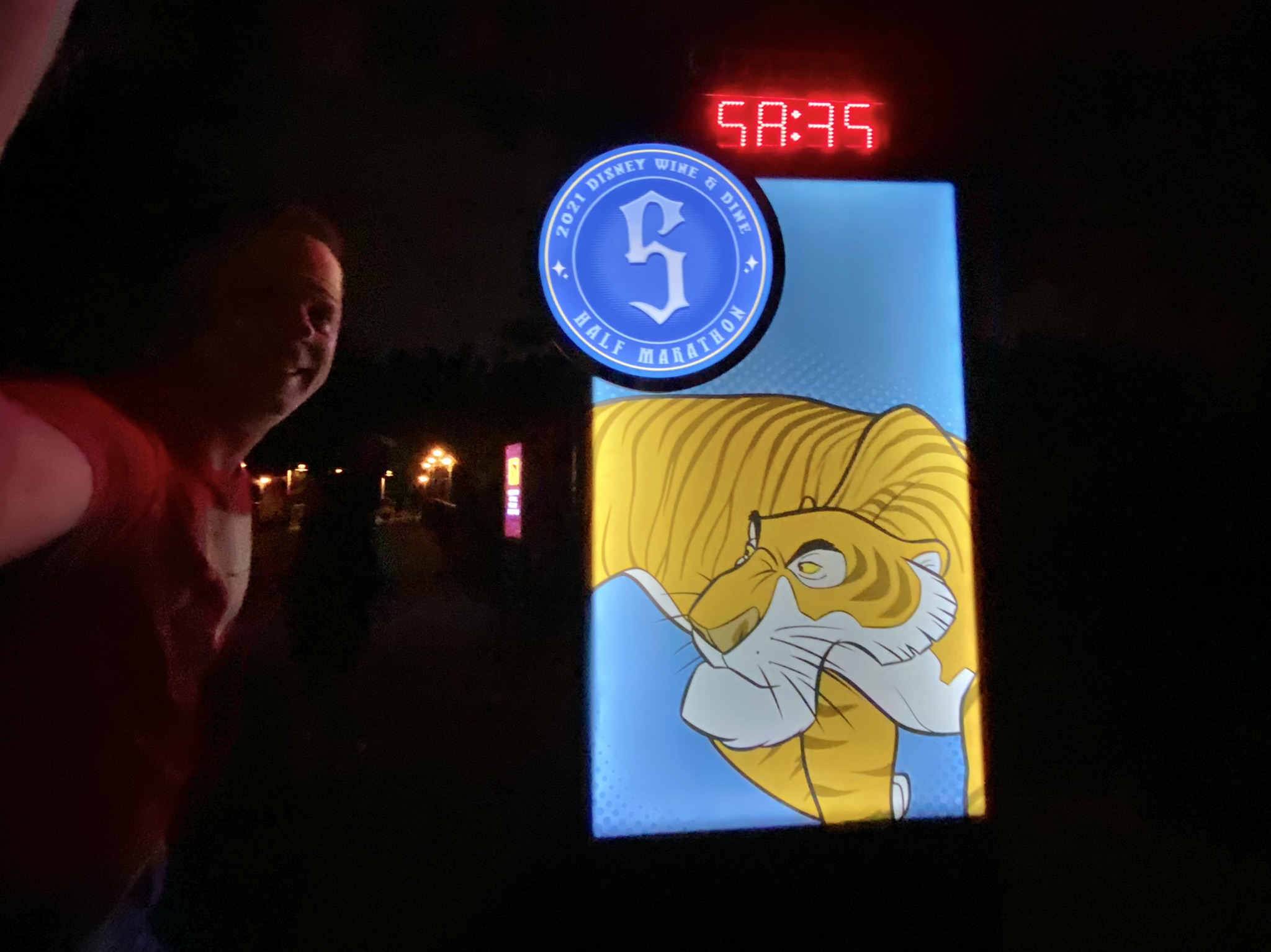 After Mile 3 was an awesome DJ set up with a large screen array that was showing Vader scenes while playing some SW main themes. Then it shifted to Hercules as we saw Pain and Pain as they were heading inside their RV for a break, then Hades. Can’t remember exactly where this was but we were in AK at this point. I stopped at the bathrooms outside of the FOTLK theater, changed since I was completely warmed up and actually hot, then we made our way through Pandora, in front of the TOL and up through Asia where we saw members of the Adventurers Club, around the ROL theater, through Dinoland, and out a back exit next to the Primeval Whirl graveyard.