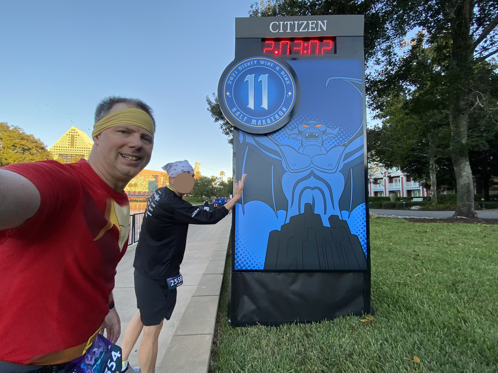 We crossed the finish line at 724a, waited a while for a bus (one left right when we got there), showered/changed at Pop, and Skyliner’d over to HS, arriving at 830a.