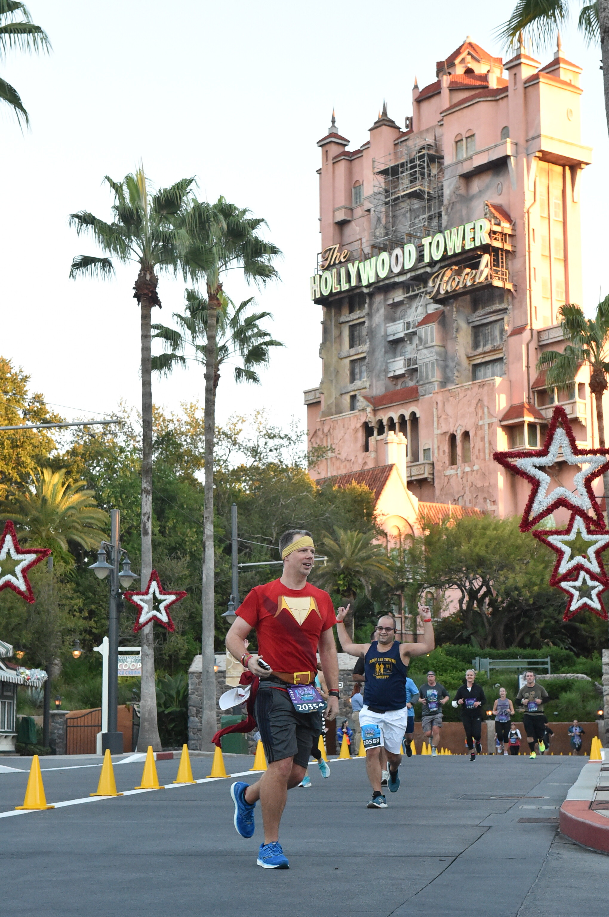 B trusted me on the touring plan stuff, and I recommended we repeat what I did during my 50th trip - rope drop Sunset Blvd. We had a LL$$$$ for ROTR and LL$ for Slinky Dog, and figured we could SR MFSR if we couldn’t manage a good LL time for that one. So we were heading down Sunset Blvd with practically nobody else. Near ToT, we saw the “balloon ladies”, which are the unofficial course time limit pace group. If runners are behind them, they can get picked up by race staff if they choose to do so. This crew is on bikes, and are mainly focused on safety. The pace requirement for RunDisney is 16 min/mile, which is a fast walk. Not difficult if you work up to it.