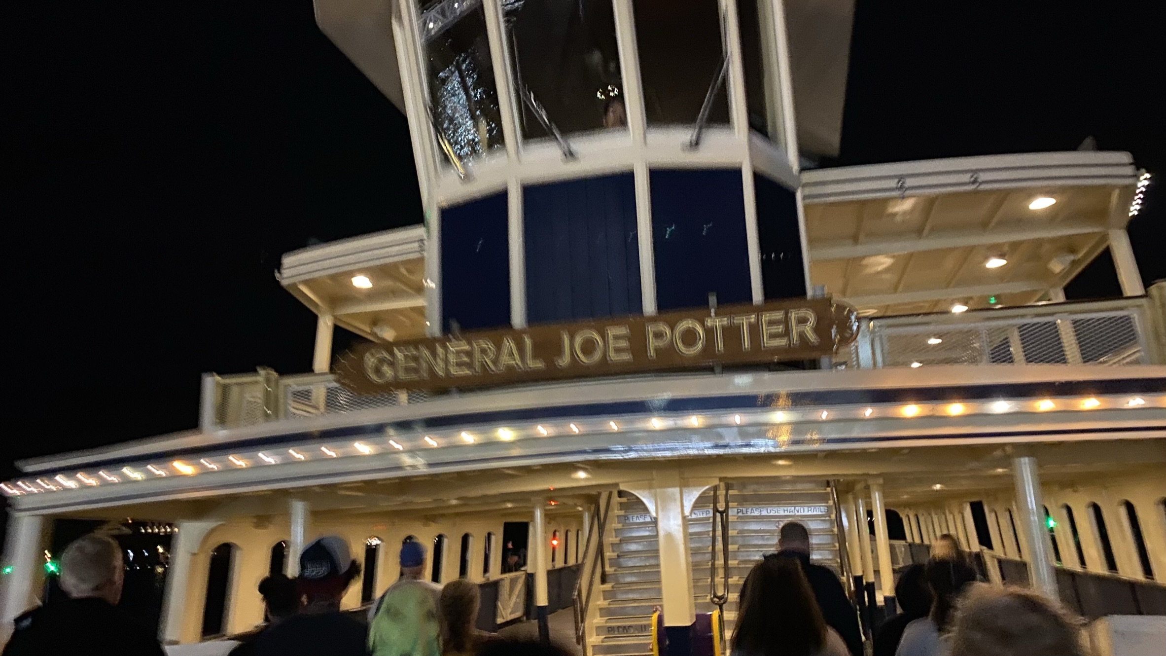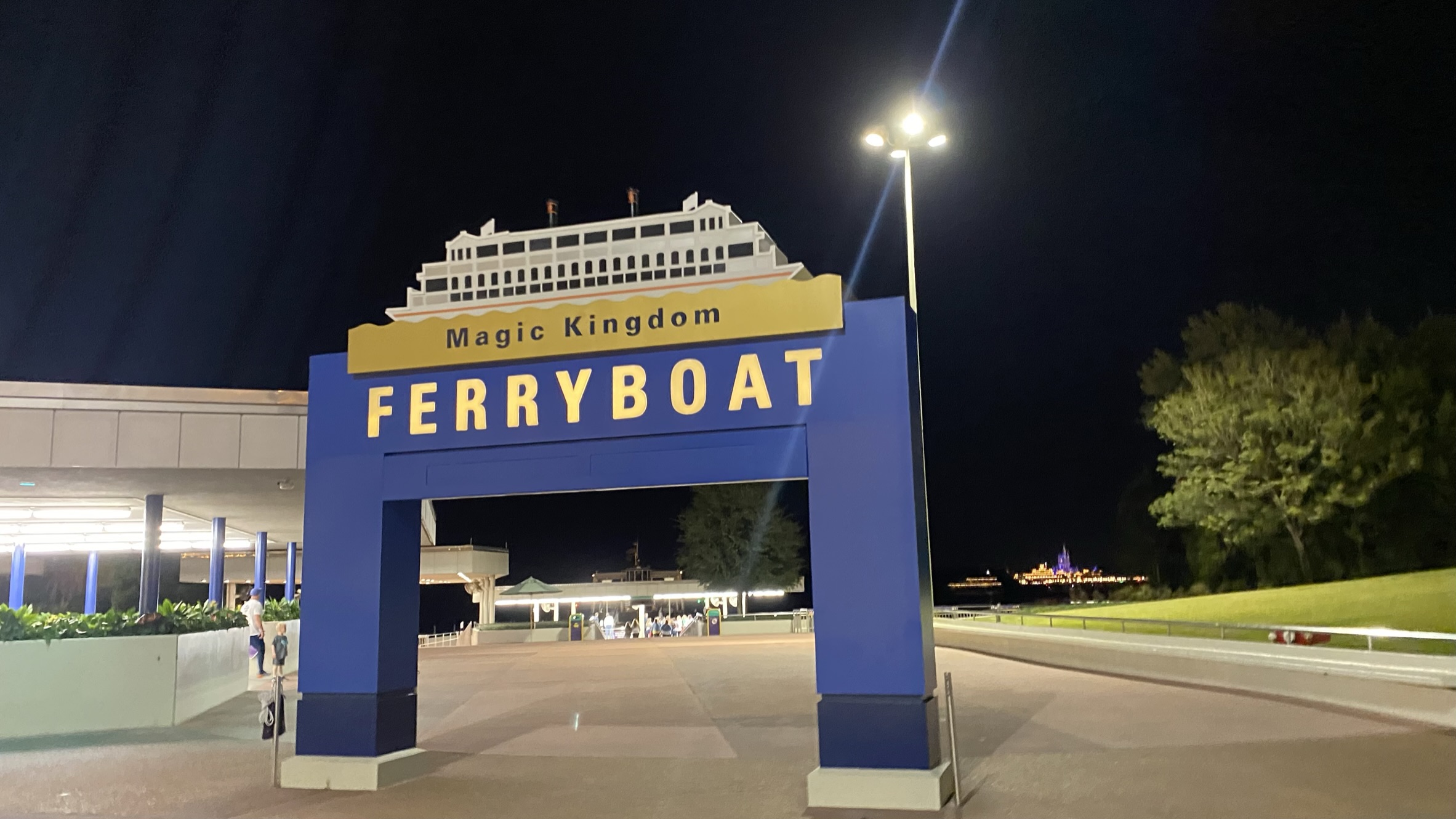 I boarded the monorail at 655p, and was joined by a large group of obnoxious drunk people having a pretty vulgar conversation, even dropping F bombs here and there. This despite the fact that young kids were in the same cabin! WTF? I made eye contact with 2 of the dads and I was certain they were going to say something. But nobody did. I’m a coward… I guess they were too. I got off at the TTC and hopped on the General Joe Potter to cross Seven Seas Lagoon to MK. I had never been on the ferry before, so I was happy to have completed my WDW transportation bingo on this trip. I really enjoyed this arrival method. Especially at night.