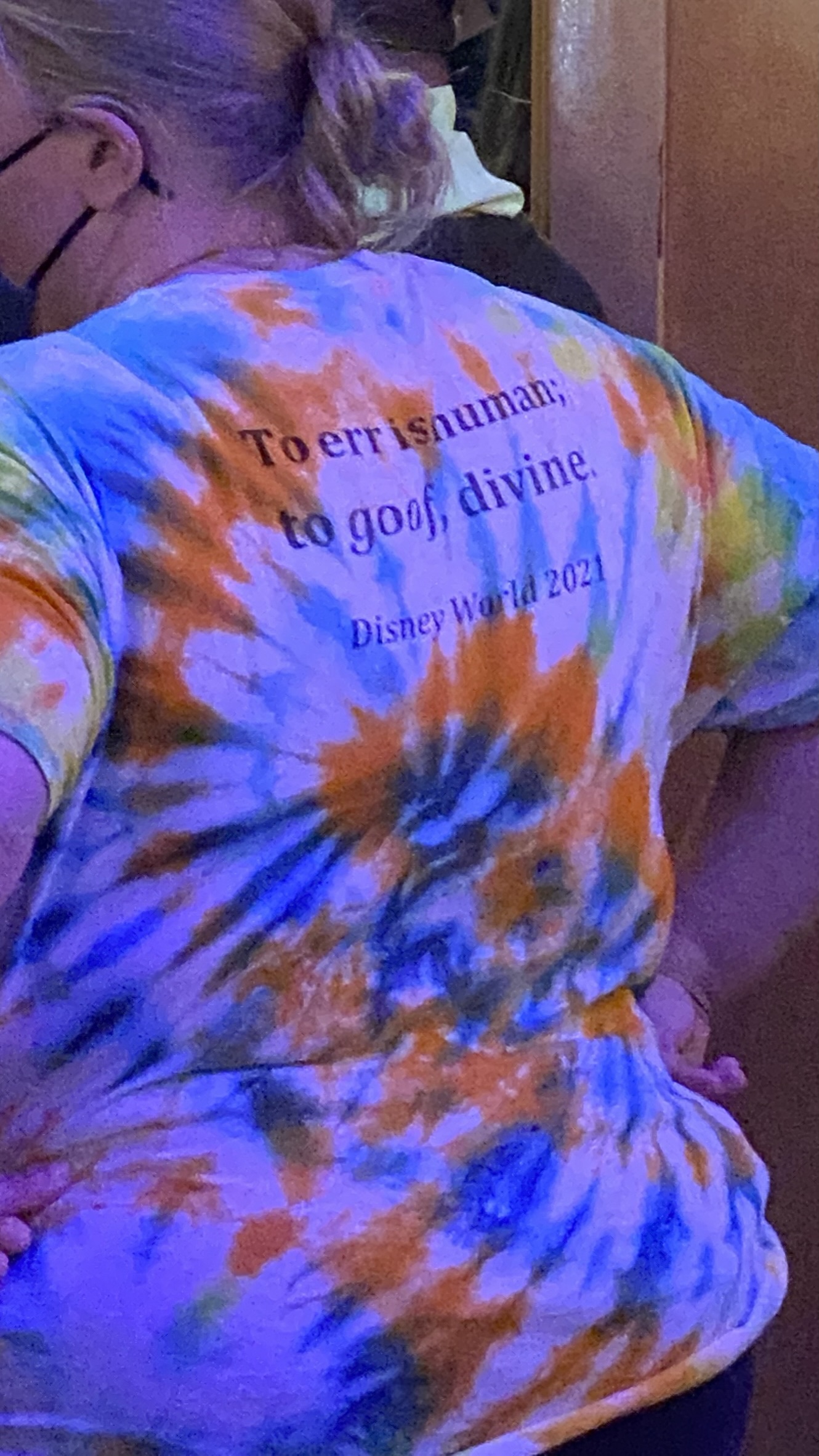 At 225p I was entering the SR queue for RnRC, and didn’t launch until 305p, so a 40 minute wait! I can’t remember the posted standby time, but pretty sure it was only 45-60, so not a huge advantage for SR. I noticed some cool details though, like some decorative columns that resemble guitars. And another guest’s shirt with an awesome slogan: “To err is human; to goof, divine.”