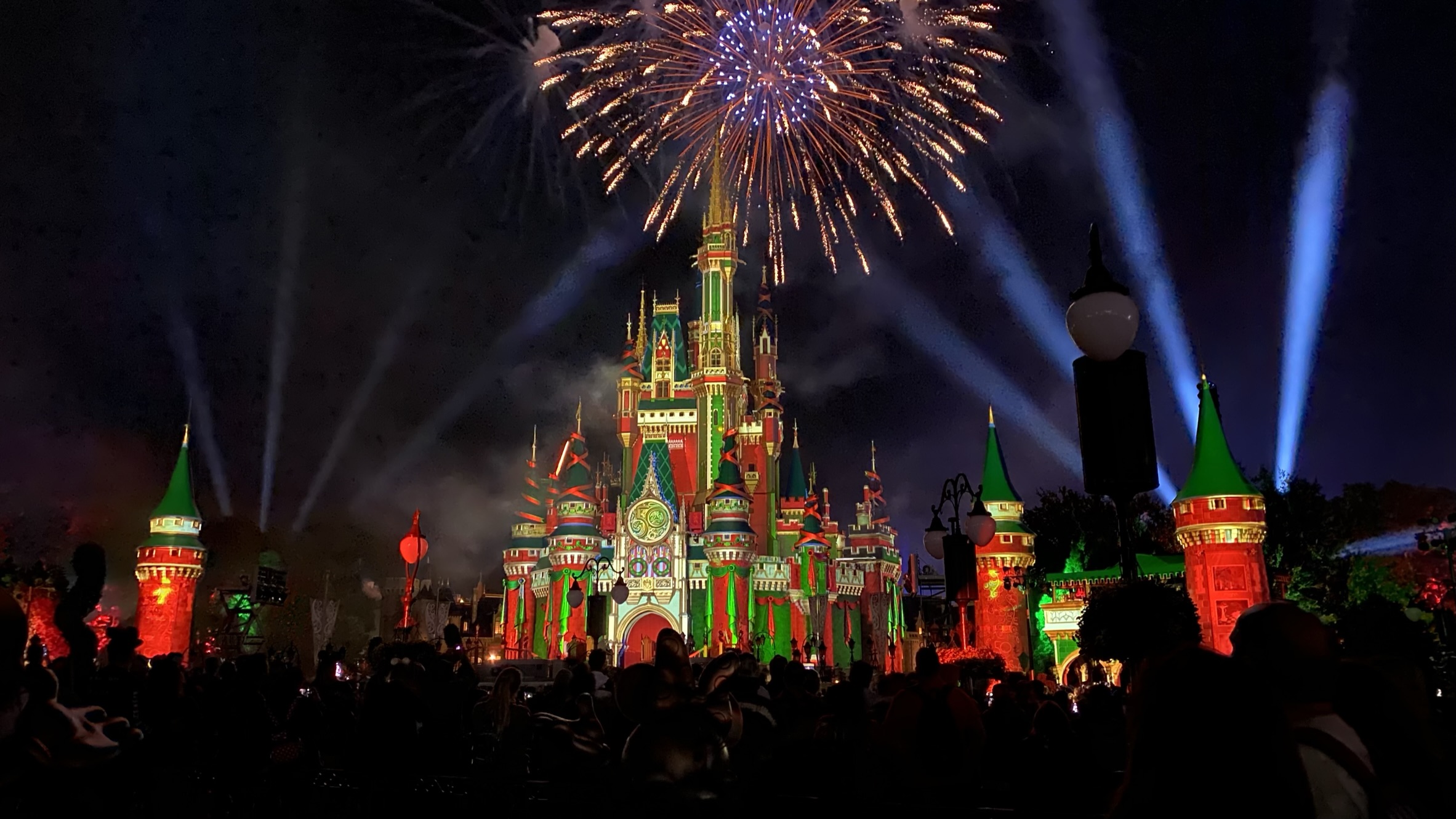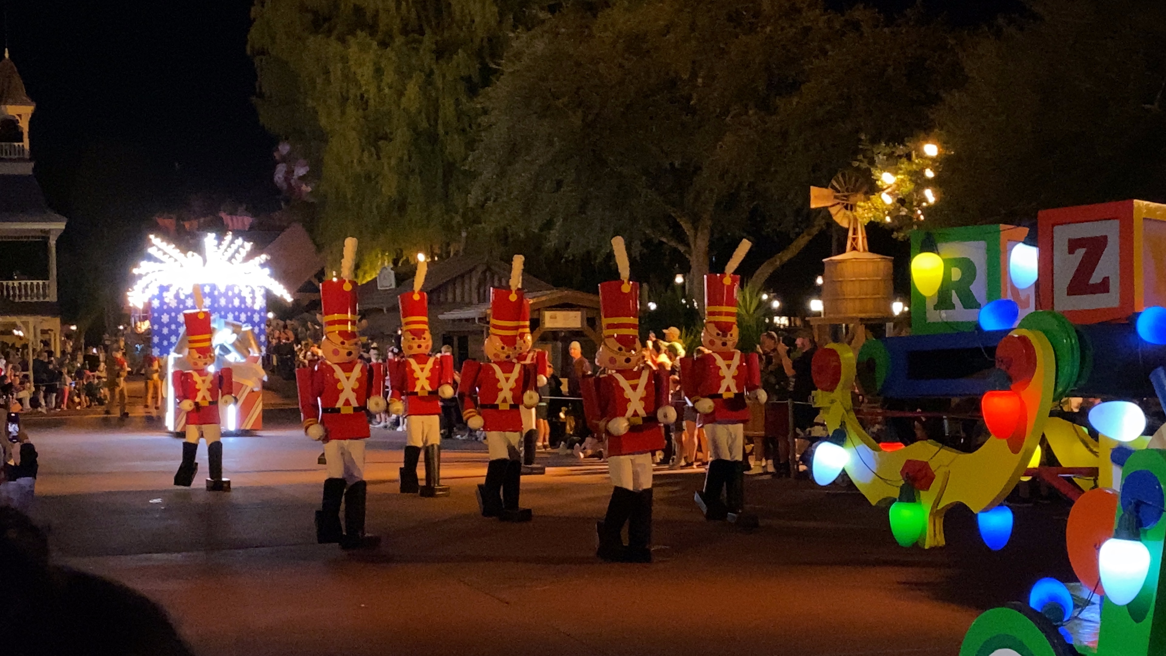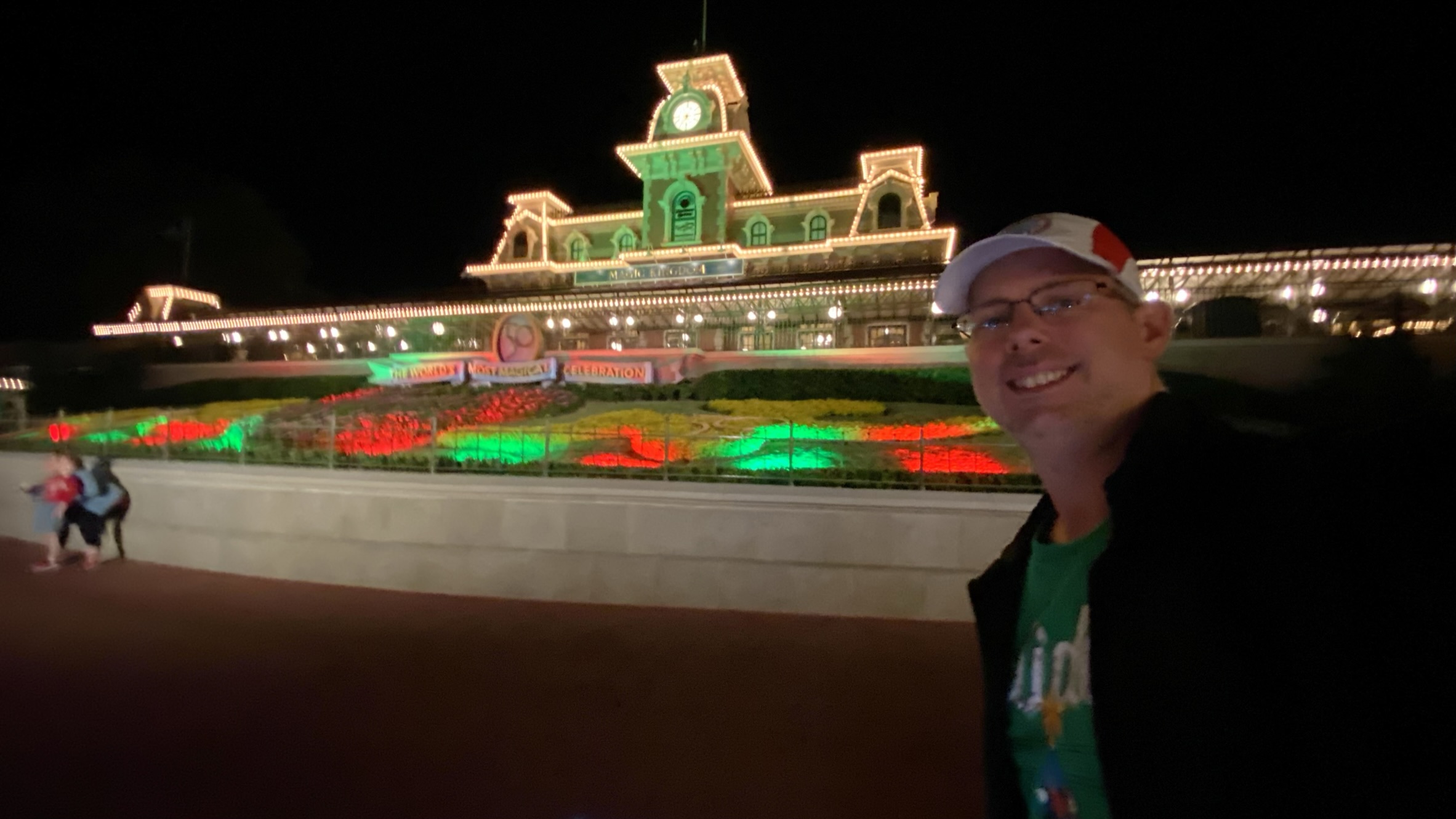 At 730p I was standing outside the train station putting on my VMAH wristband, and the crescendo of excitement was reaching a critical level. The slow approach on the ferry definitely amplified my anticipation. The Magic Kingdom was aglow with Christmas! I got to my spot on Main Street at 735p and just soaked it all in for 25 minutes when Enchantment started. For the first time on this trip I truly felt some magic.
