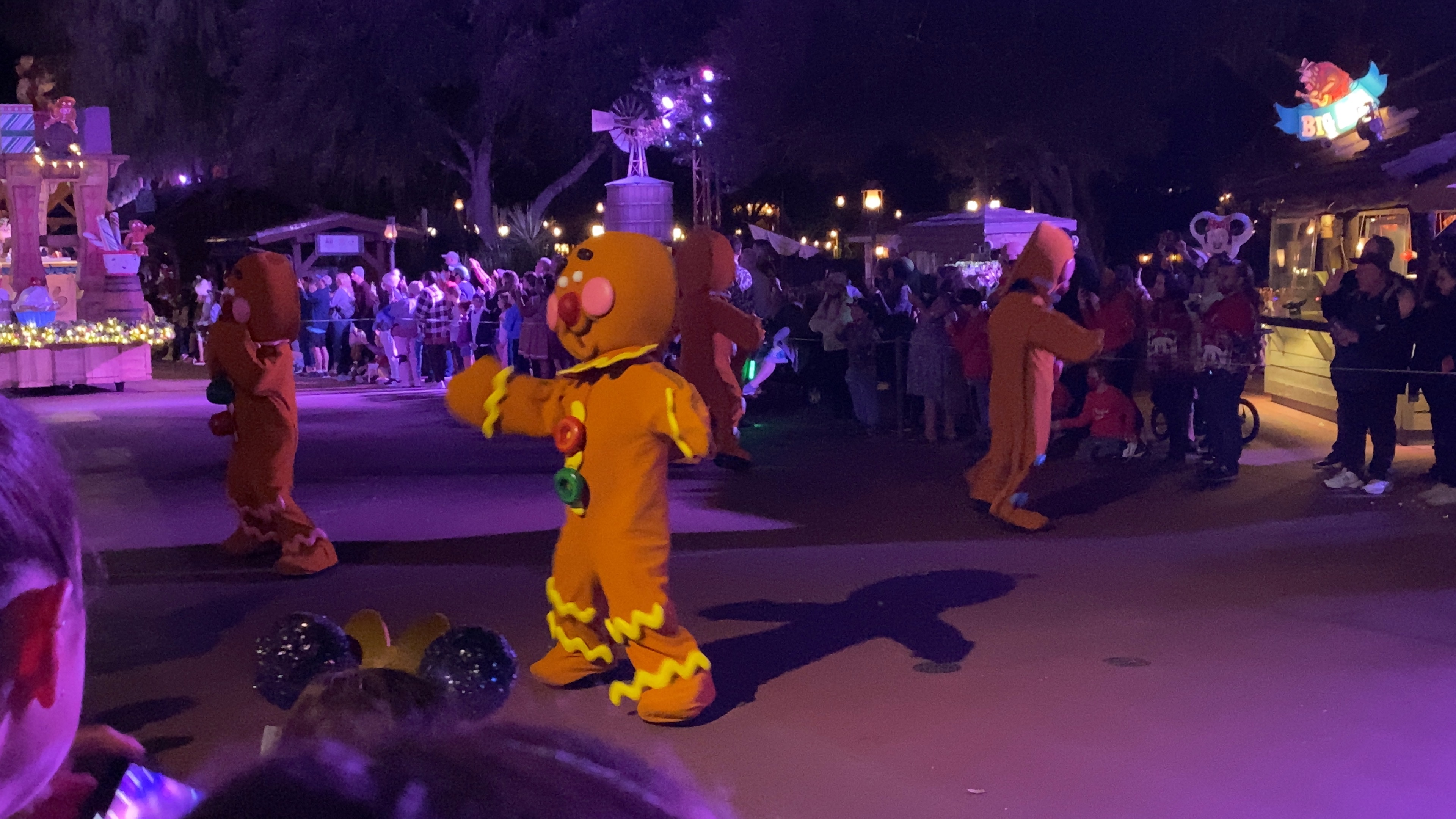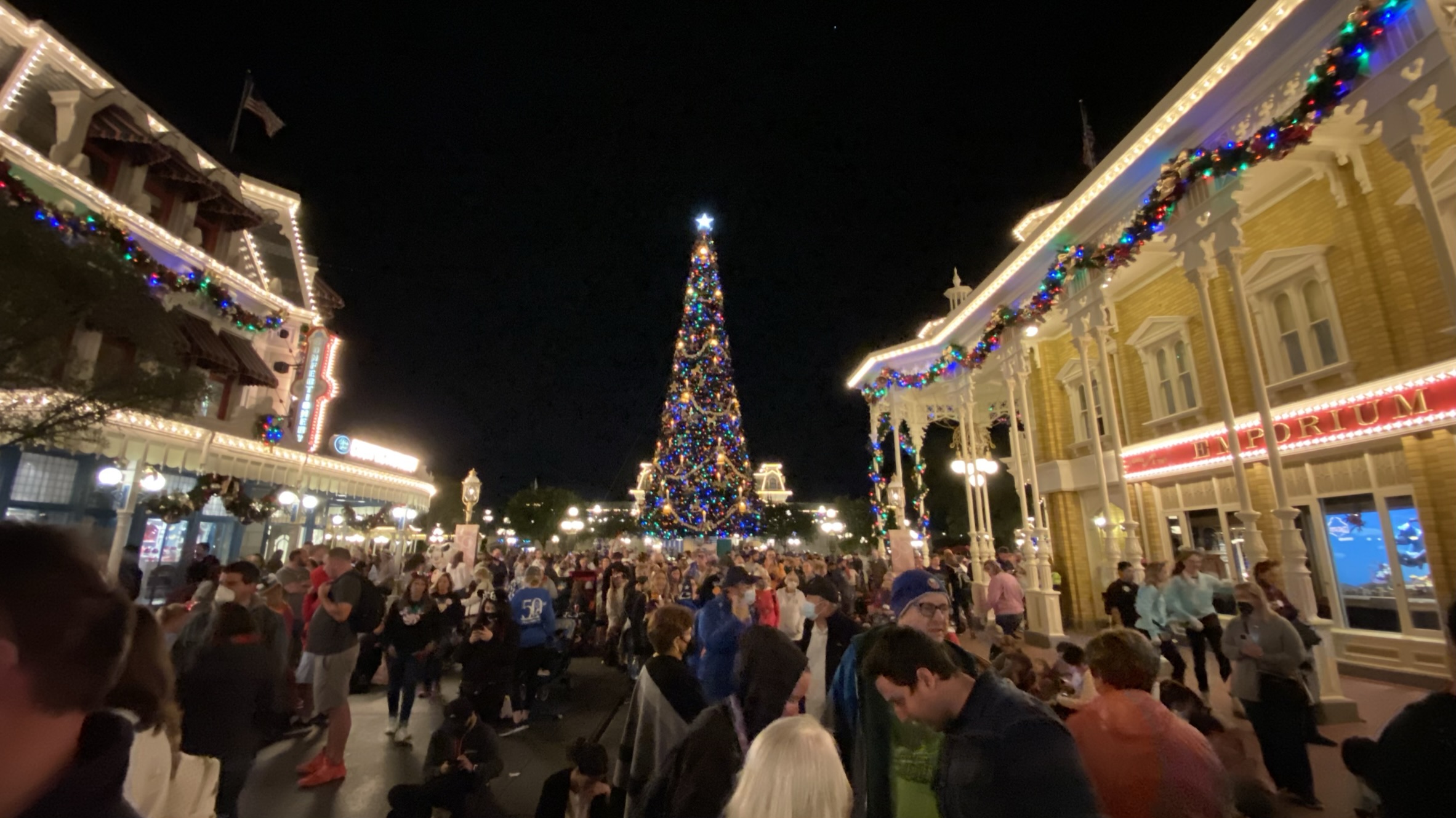 I didn’t spend a lot of time beforehand thinking about touring strategies for VMAH other than penciling in a logical order of special attractions. I remember from the before-times that Frontierland was a great spot to watch parades, but only saw the parade from Main Street. So, I decided to tour clockwise through Adventureland and Frontierland with the goal of staking out a spot near the Reindeer Wranglers. After the parade, hit key Fantasyland and Tomorrowland rides before getting a spot in the hub for the 1115p fireworks. Anything additional would be a bonus.