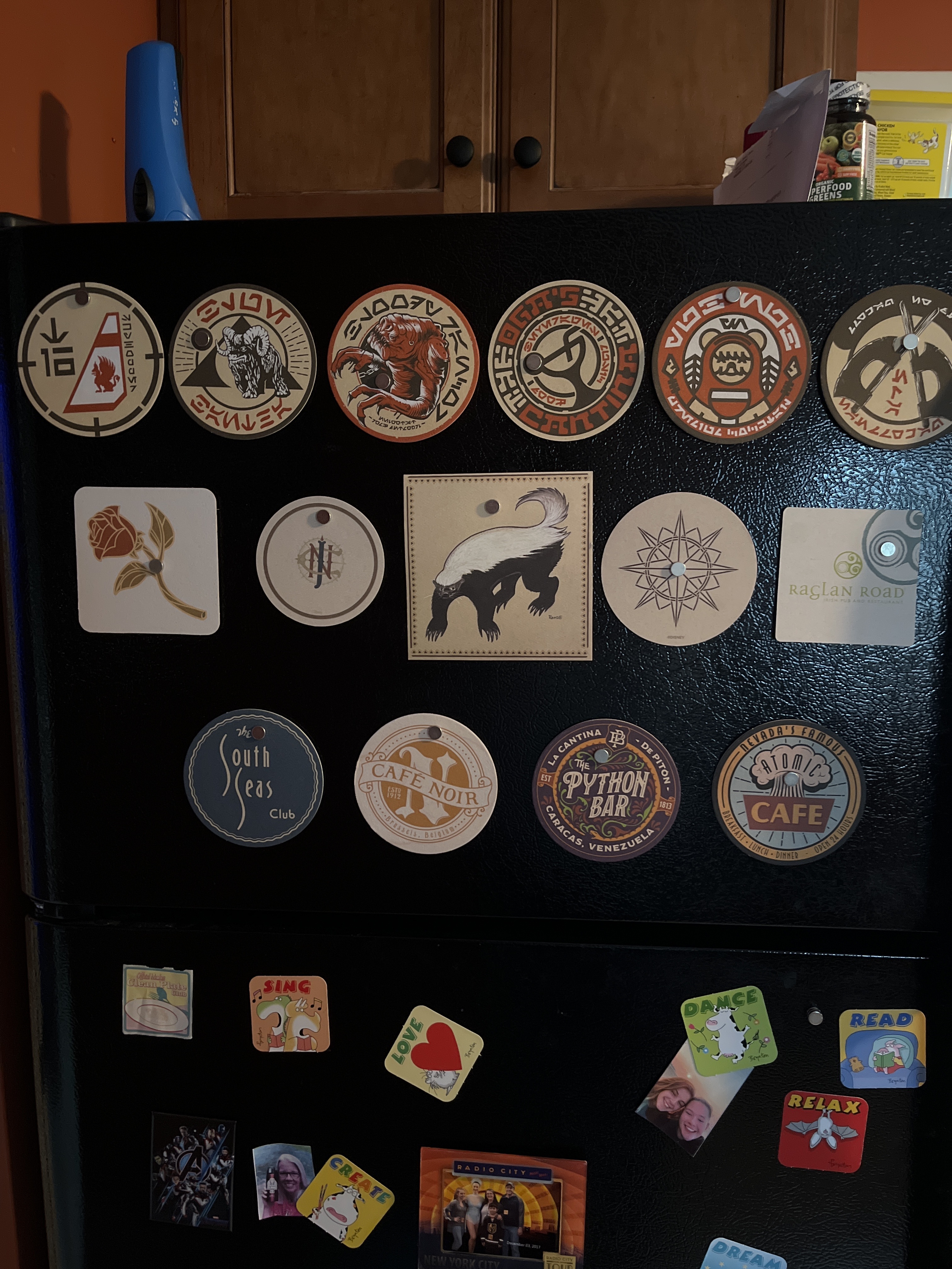 the coasters. Here is my refrigerator right now, and I will look forward to adding to it!!