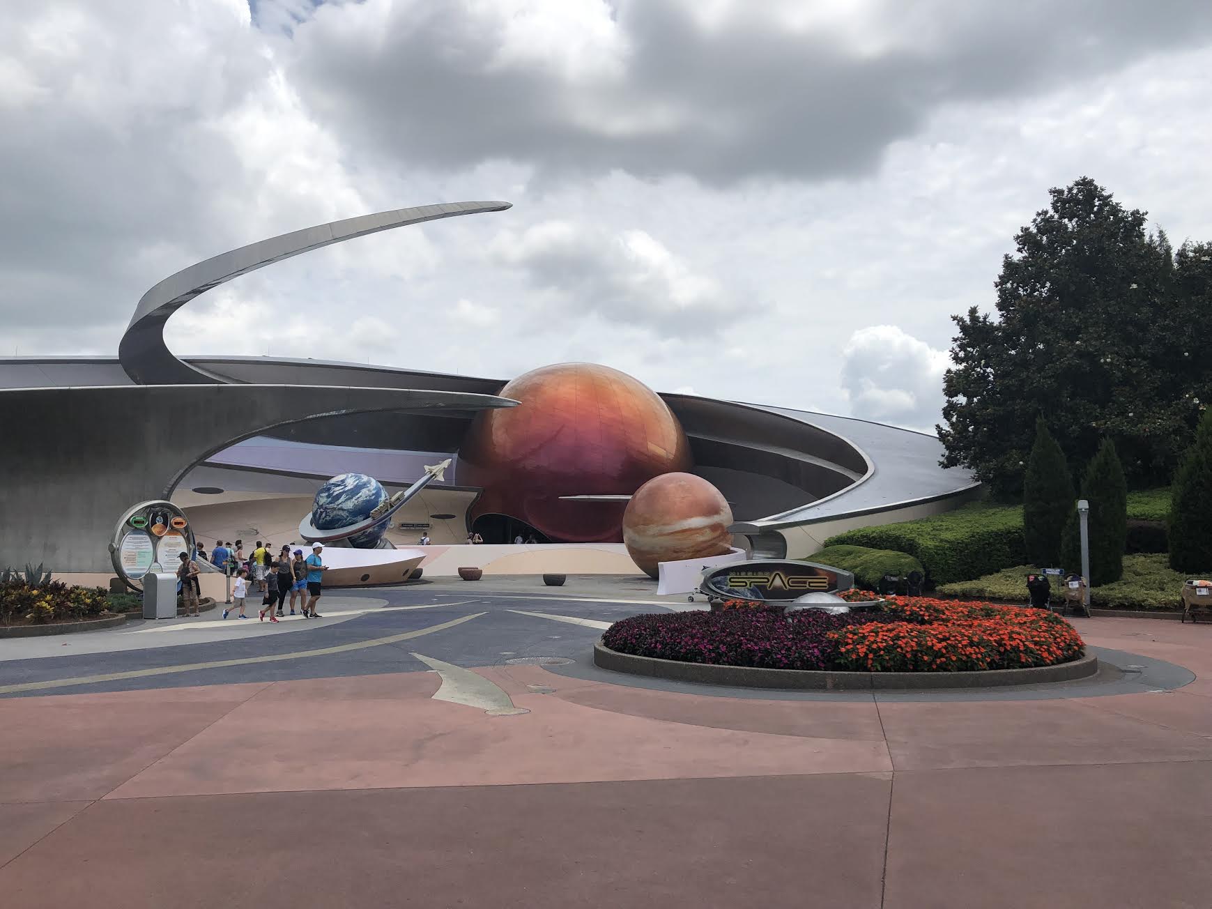 When we exited outside, the heat and the humidity hit us hard, and that’s when you start to realize how long of a walk it is from one side of Future World to the other. As we walked I checked TT wait time and it was over an hour so we used our MS FPPs instead. We rode for the first time the Orange version the ride (rode the green on our 2011 visit), and neither of us found it very enjoyable. The pressure of your face at the beginning of the attraction is very uncomfortable. I STARTED USING THE BREATHING TECHNIQUES I USED THE LAST TIME I WAS IN LABOR 17 YEARS AGO! to get through the first part… LOL…We both felt like we had been a victim of a bit tortured so we won’t recommend this ride. The best part of the attraction is this beautiful photo…