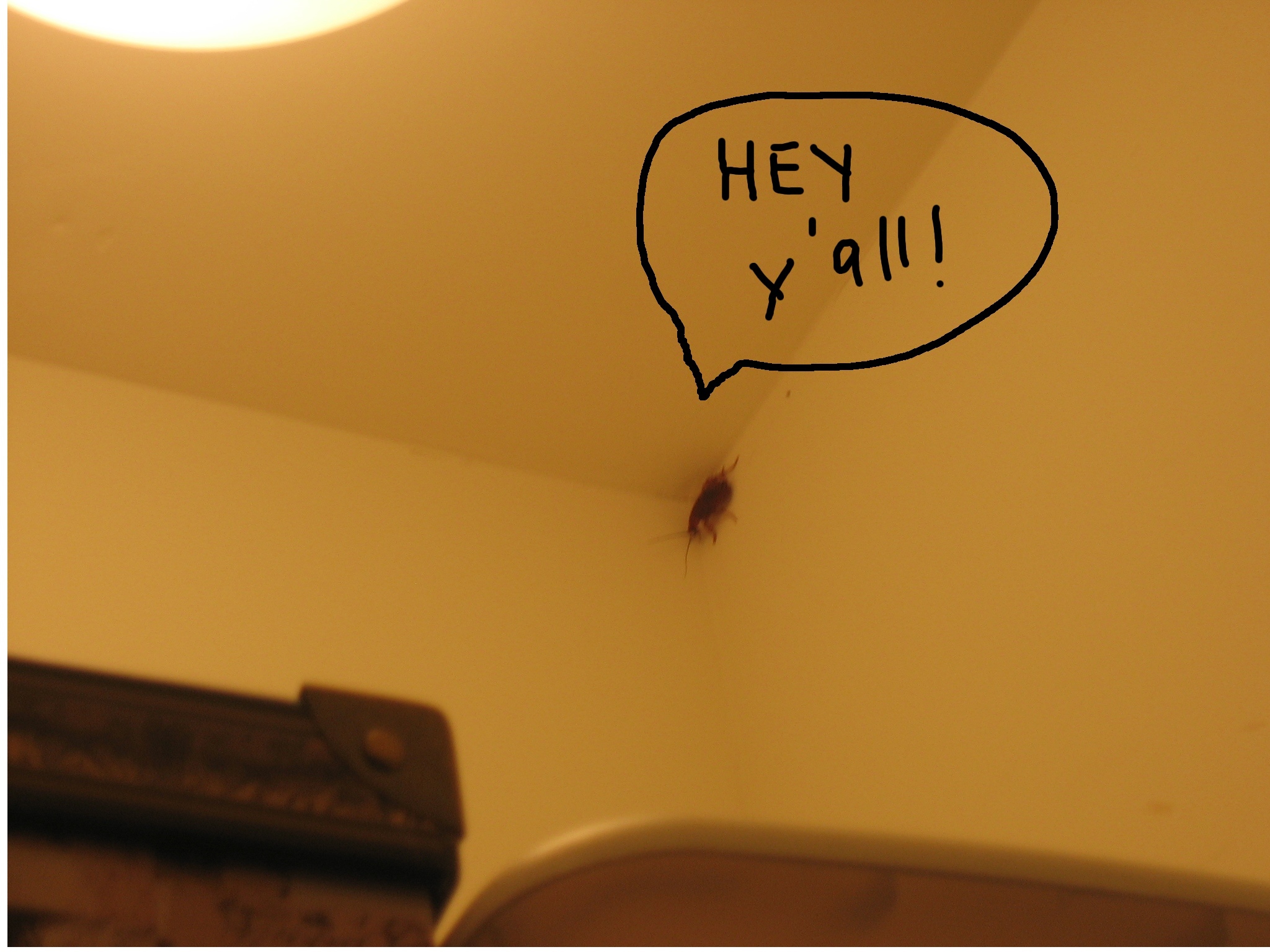 In Florida there are these creatures, we call them Palmetto bugs. (I am guessing you all must have them in Texas as well) Anyhow, if you donât know what they are, they are like roaches on steroids. I am fairly certain they were birthed straight from the flames of the netherworld, or maybe some mad scientistâs experiment gone wrong⌠or, maybe very right. Anyhow, they are so big that you can hear them run across your floor. NO LIE. They can climb walls, enjoy crossing ceilings (I suspect so they can drop on you while your sleeping). These things are big enough that I am convinced they wear tennis shoes and probably carry weapons.