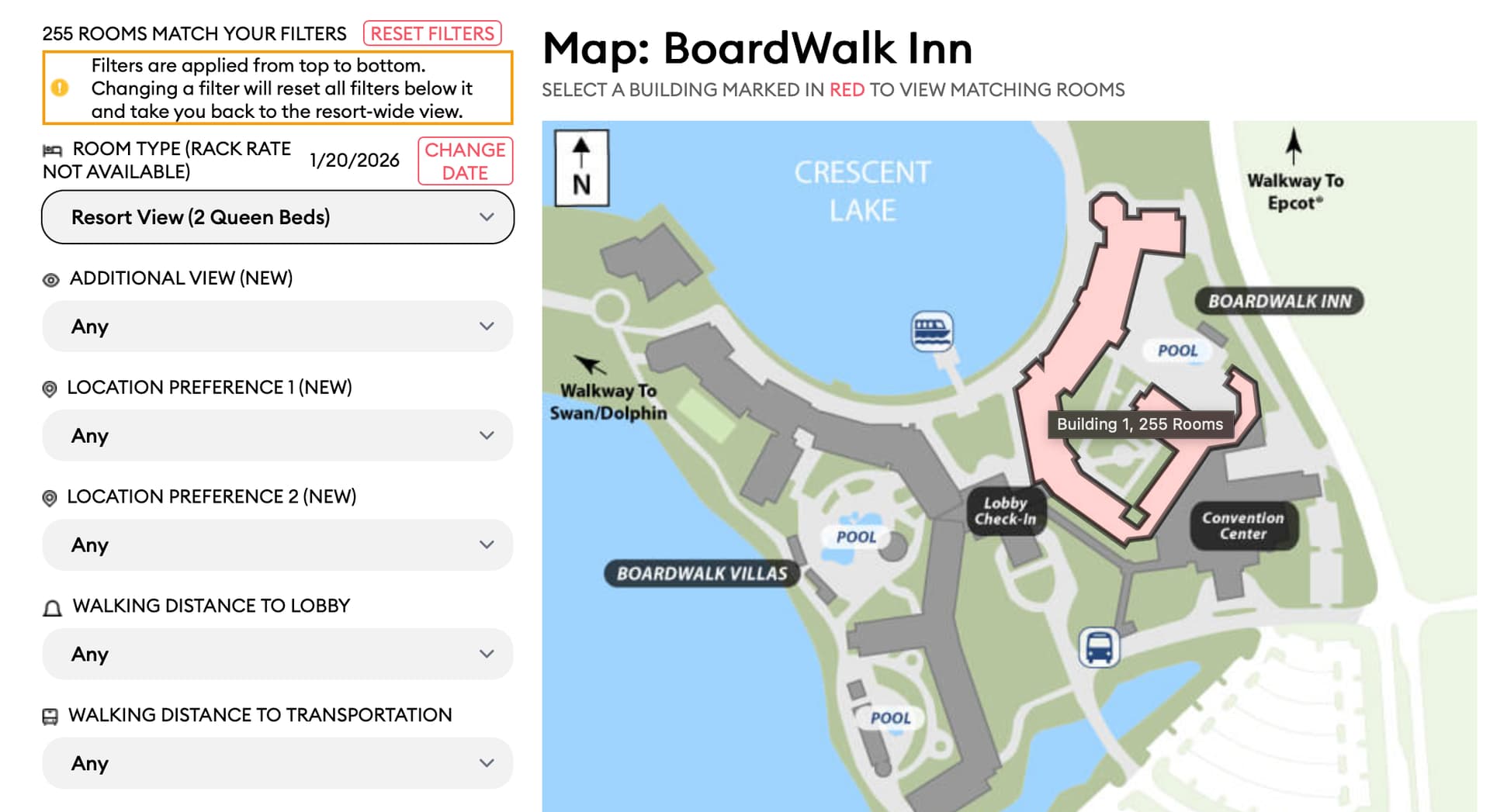 Select Hotel (in this case, Boardwalk Inn)