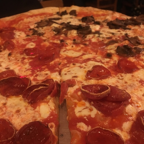 Pepperoni and mushroom pizza