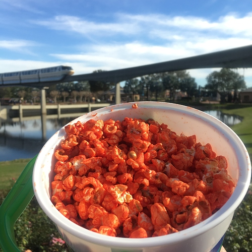After we thanked the Phoenicians, we made a beeline for one of our favorite snacks - buffalo blue cheese popcorn! There’s a popcorn stand sort of near the Imagination Pavillon that has flavored popcorns. The buffalo blue cheese is tangy and a little spicy and we love it. We’ve been looking forward to having it for a year! We’ve even tried to recreate it at home with mixed results.