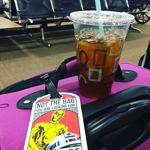 After we got through security, our first stop was Caribou Coffee to get some caffeine. I don’t like coffee (unless it’s more milk and sugar than coffee), so I opted for some iced tea.