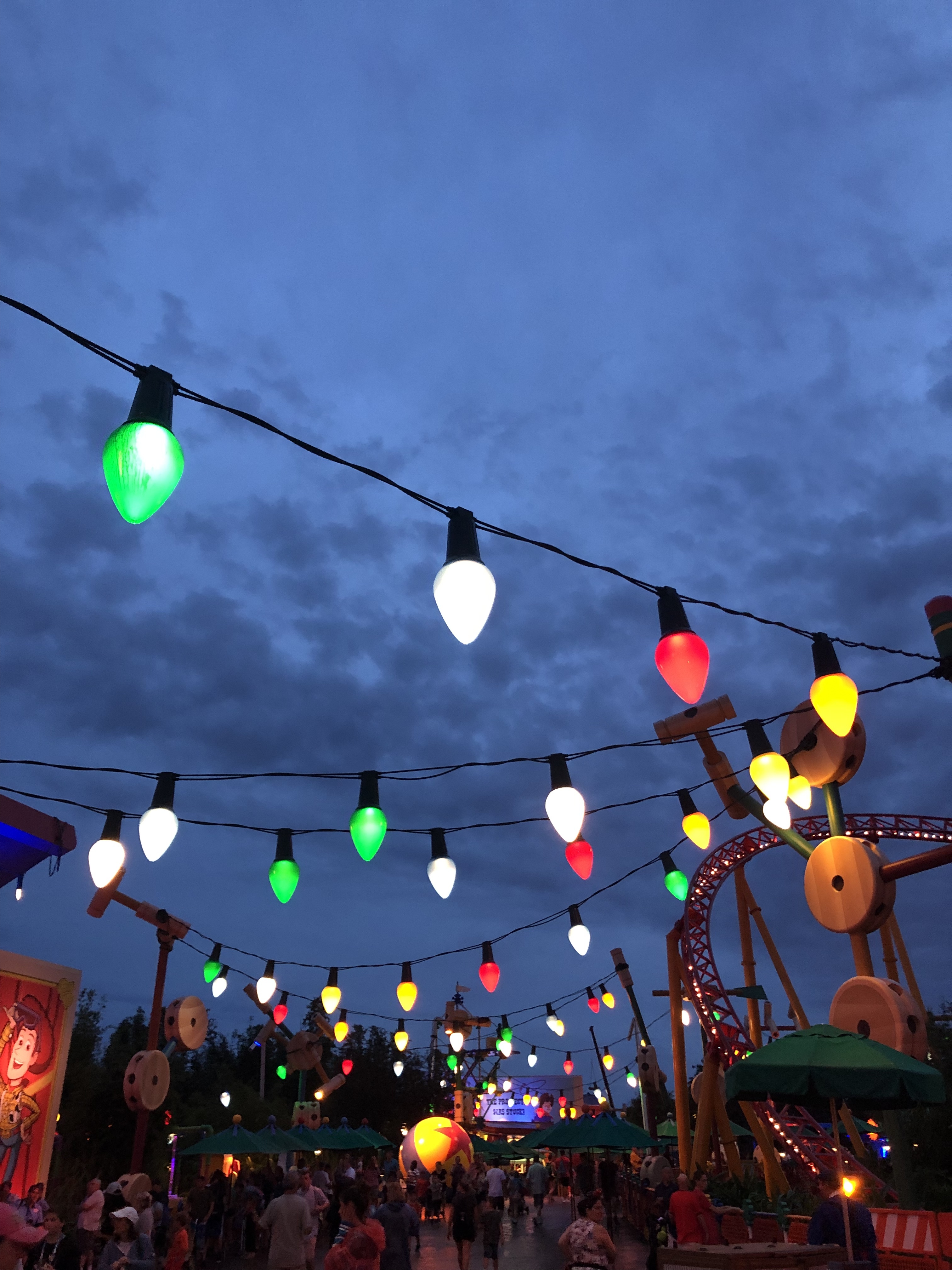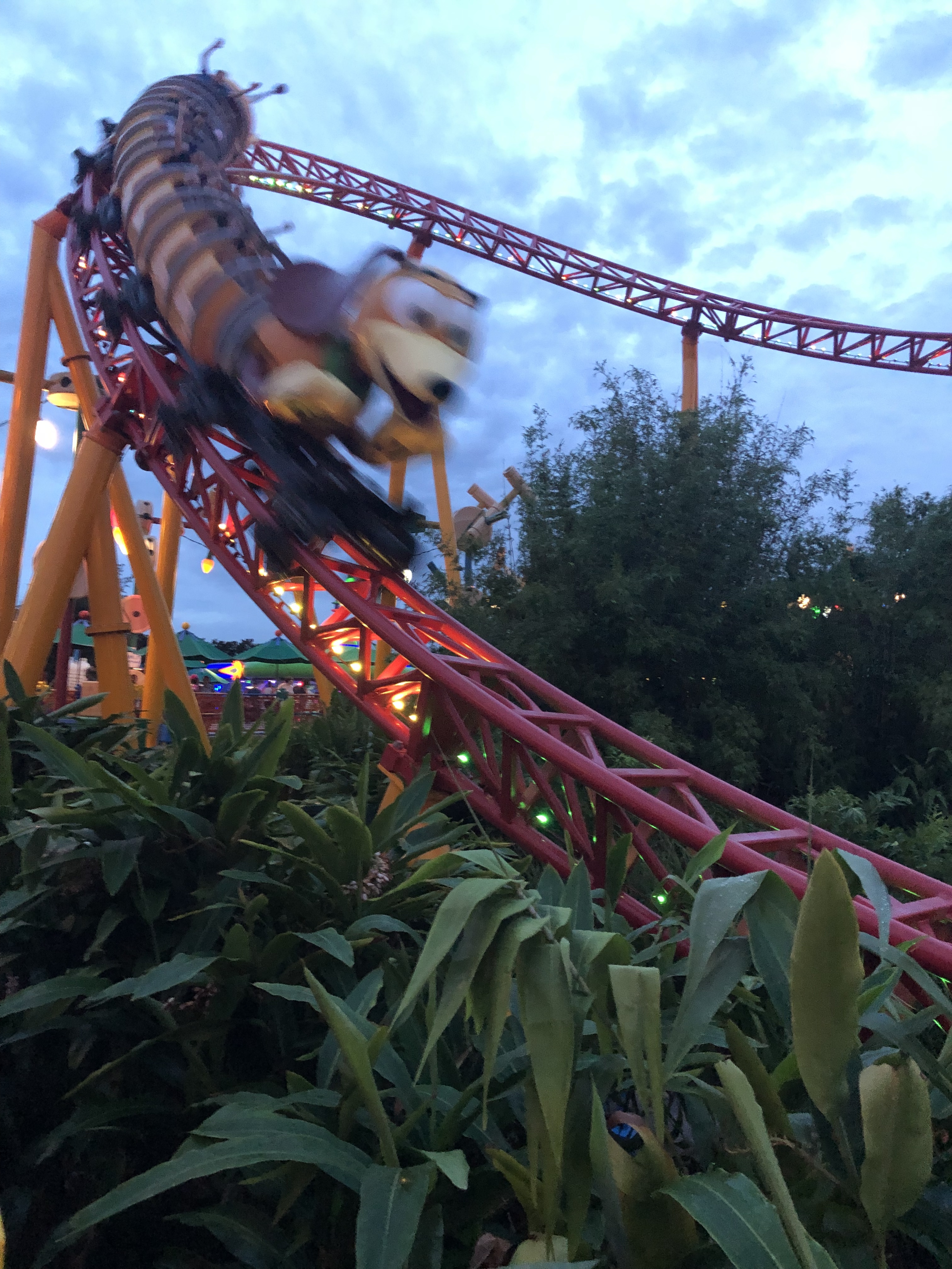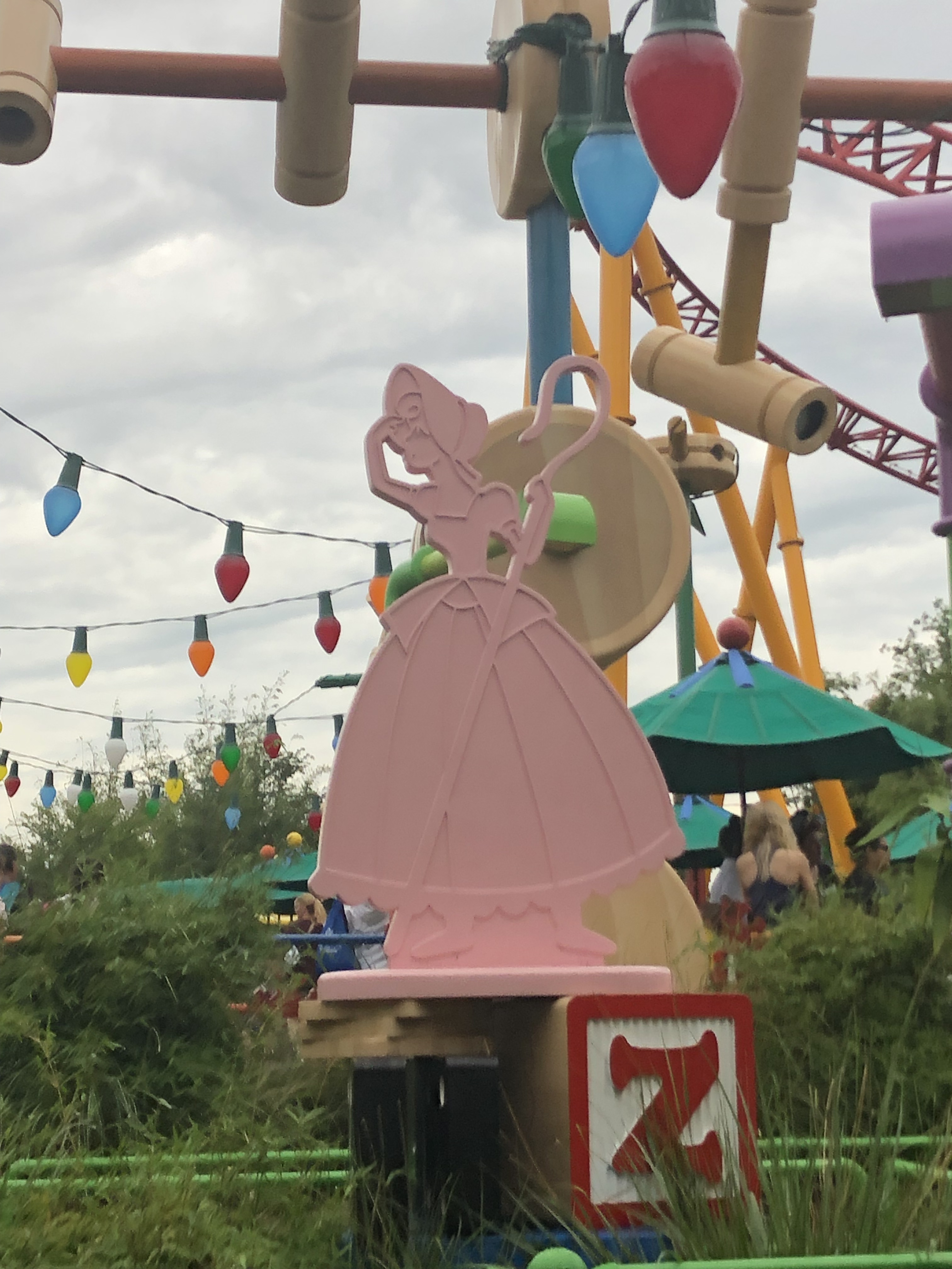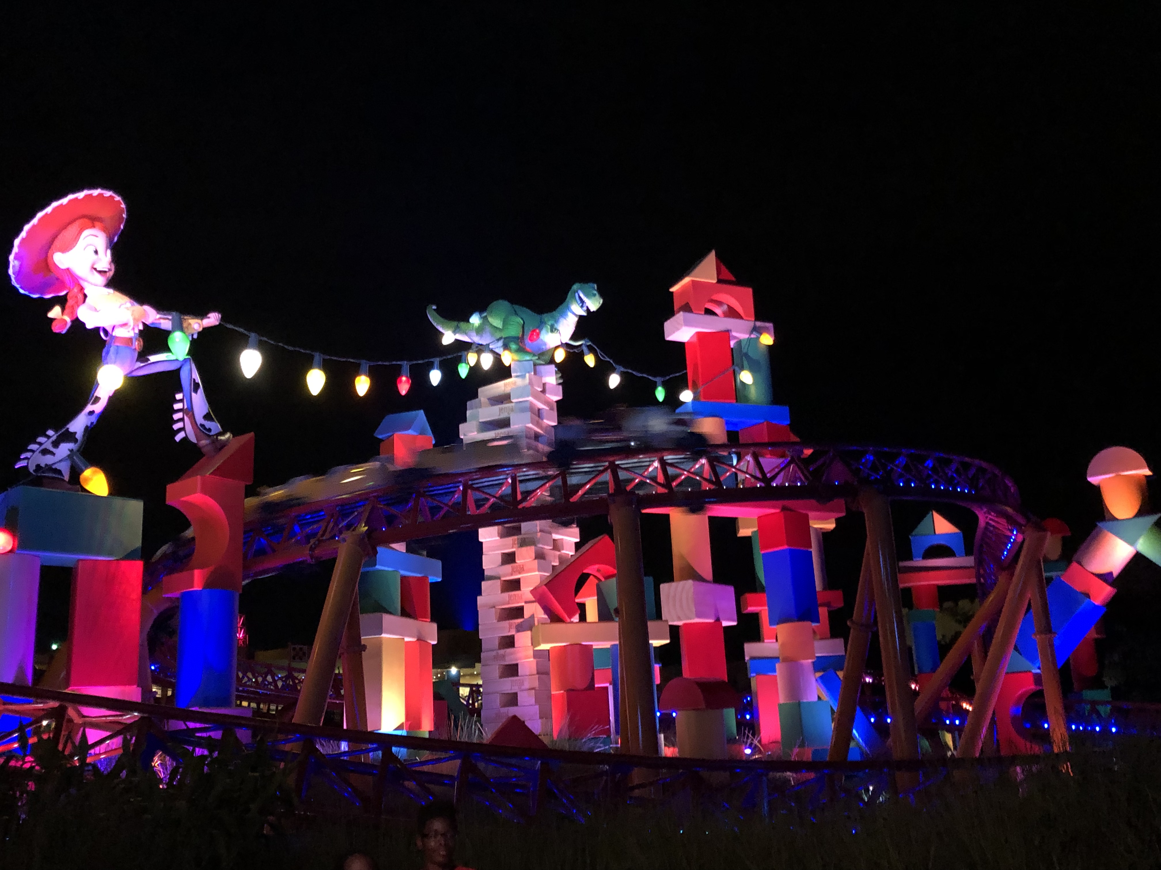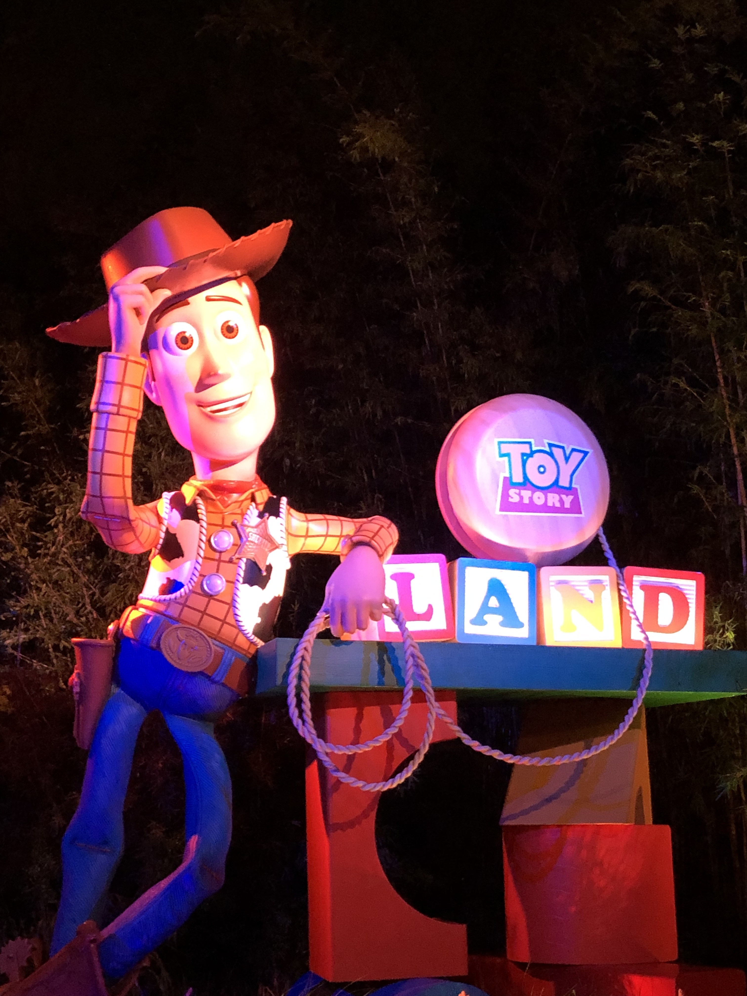 It was then finally time for what I had been waiting for: Toy Story Land! Iâve loved Toy Story forever so I was super excited to see it in person. We entered TSL at 7:15pm and the park was closing at 9, so we spent the last 2 hours here. We had FPPs for ASS because we figured we could wait for TSMM in the AC while ASS is outside, so we did that first and waited maybe 2 mins. The ride was fun, we did Mater at DCA last summer so we knew what to expect. We then did TSMM which had a 40 min posted wait but was actually only 22. This is one of my all time favorite rides but DF beat me again!