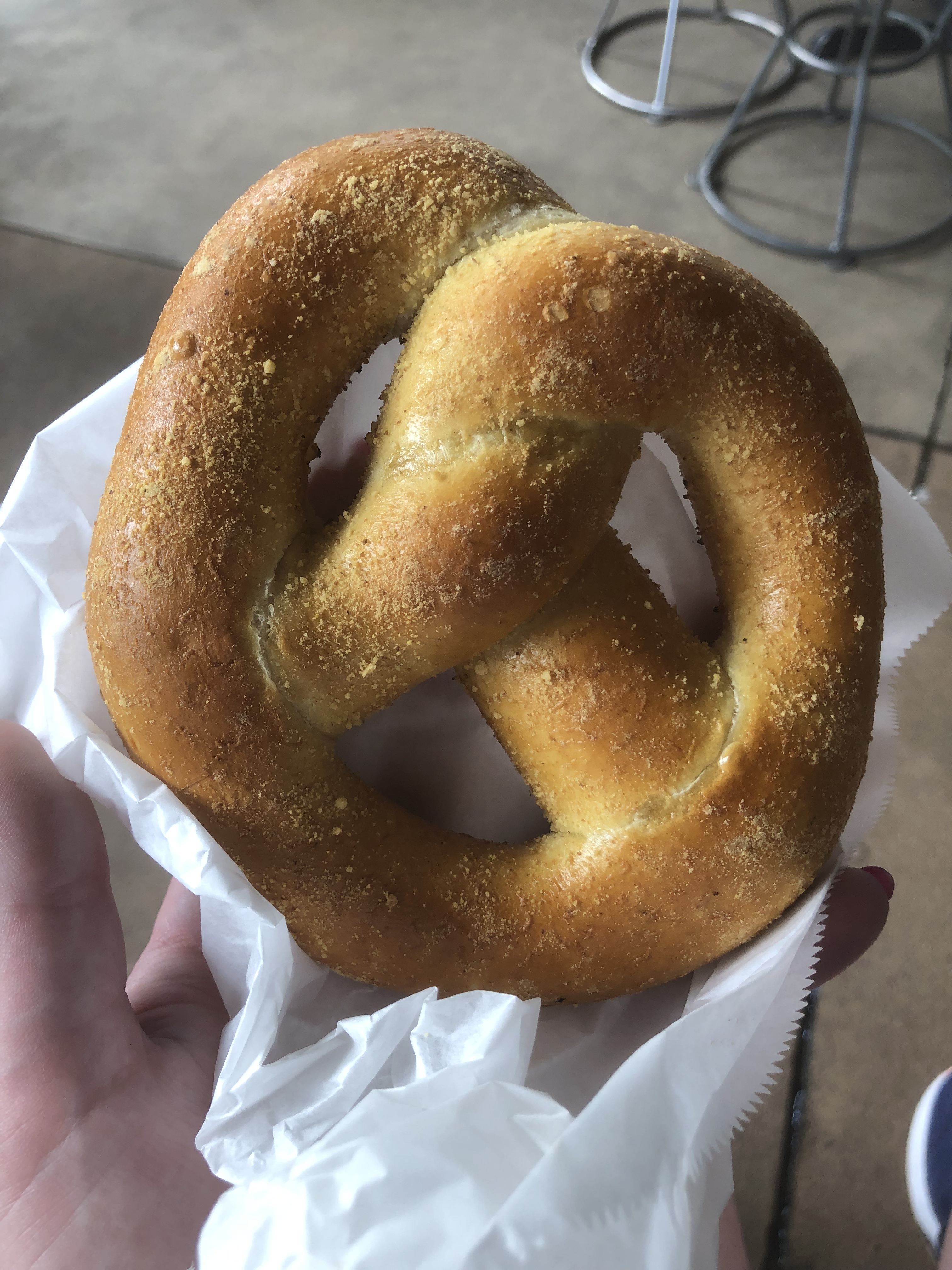 Peoplemover was still down so we decided to have a snack while we waited. DF got popcorn and I got the cream cheese pretzel, which Iâve wanted to try for a while. I loved it! It can also be mobile ordered from the Lunching Pad which is a bonus.