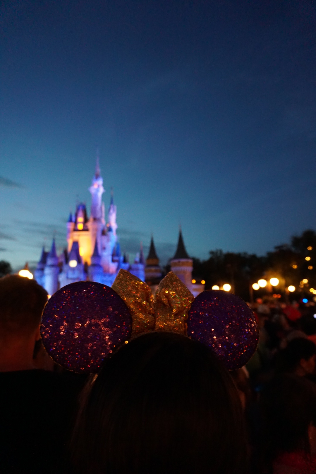 We hung out for a little while and took some pics as it was getting darker and then got in line around 8:45. Posted time was 55 mins, we waited about 35, so not too bad. The line was cute but I could not have waited there in the middle of the day in the heat! SDD was super smooth but a little more up and down than I (and my stomach) like. I can do it again but I donât think I could ever do it more than once in a day. By the time we got off the park was closed so we took a few more pics and then headed out.