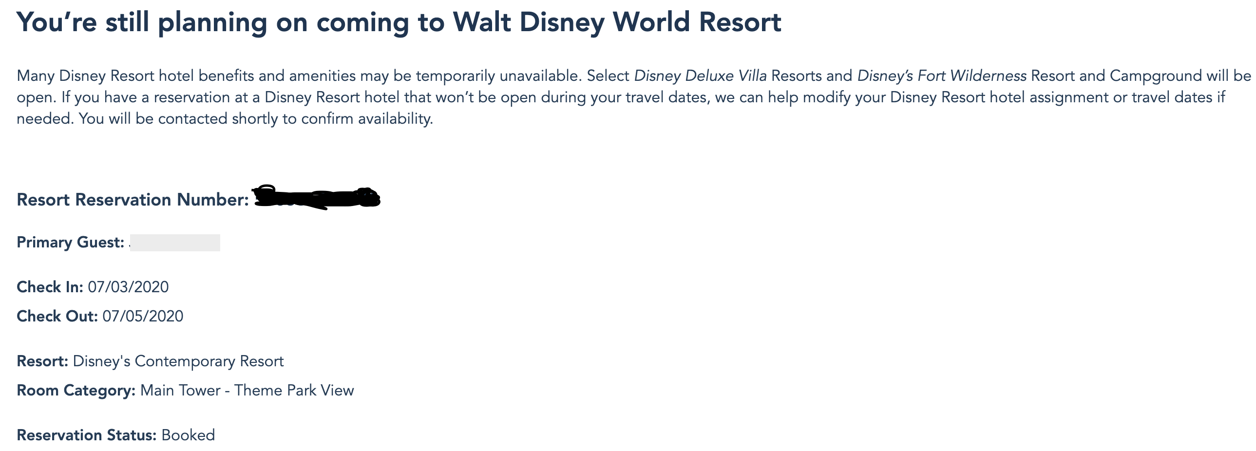 And FWIW, someone on another forum said they selected the second option to modify, were directed to call Disney, they did and they could not get them rebooked during any time in July as there was no availability. Because they had an AP discount on the room, they could not book any other type of rate. They couldn’t book a new rate because they aren’t accepting new reservations. Just for what that is worth and YMMV.