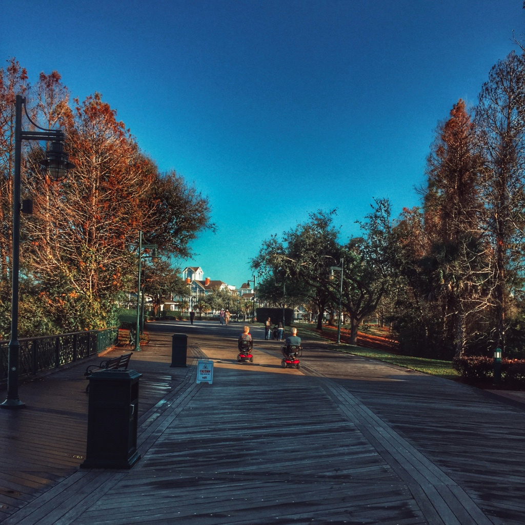 Rolling to Epcot from Boardwalk Inn - Ridey carts are a blessing and a curse. They couldn’t have done the trip without the scooters (Ma’s bad knees, and Pa’s broken back - it’s truly a miracle he’s not still in a hospital) but the scooters were the most challenging part.
