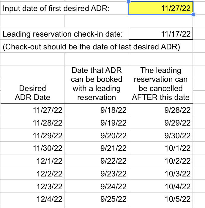 Input date of first desired ADR: November 27th. We will be checking out on December 4th