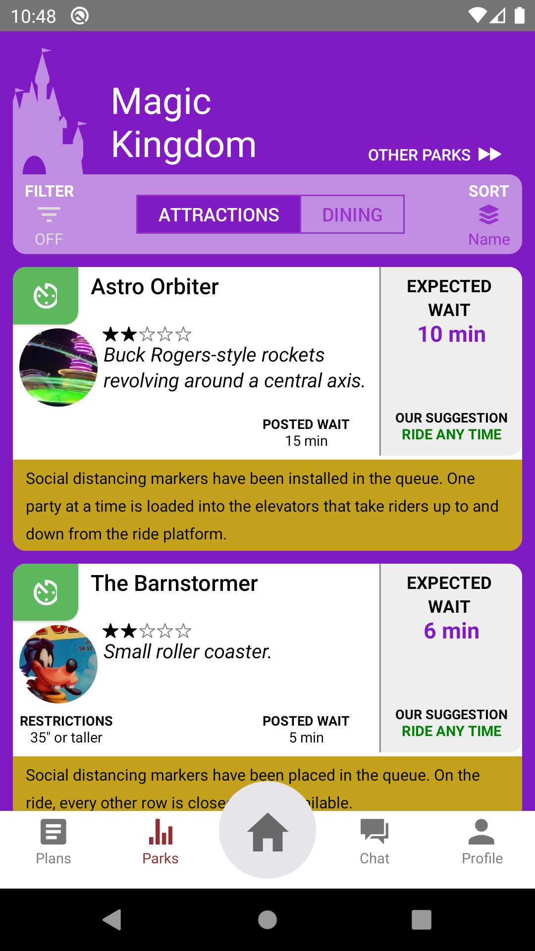 Move it. But also… are there any lines that do NOT have social distancing measures? If so, I’d like a warning for those specific lines on the park details page. To me, it’s more important to know the lines (if any) that I should avoid.
