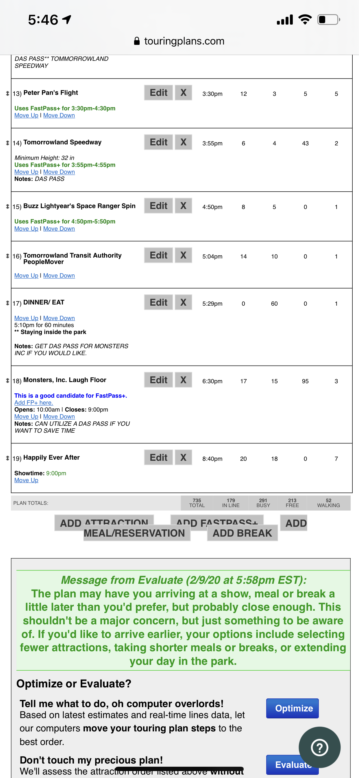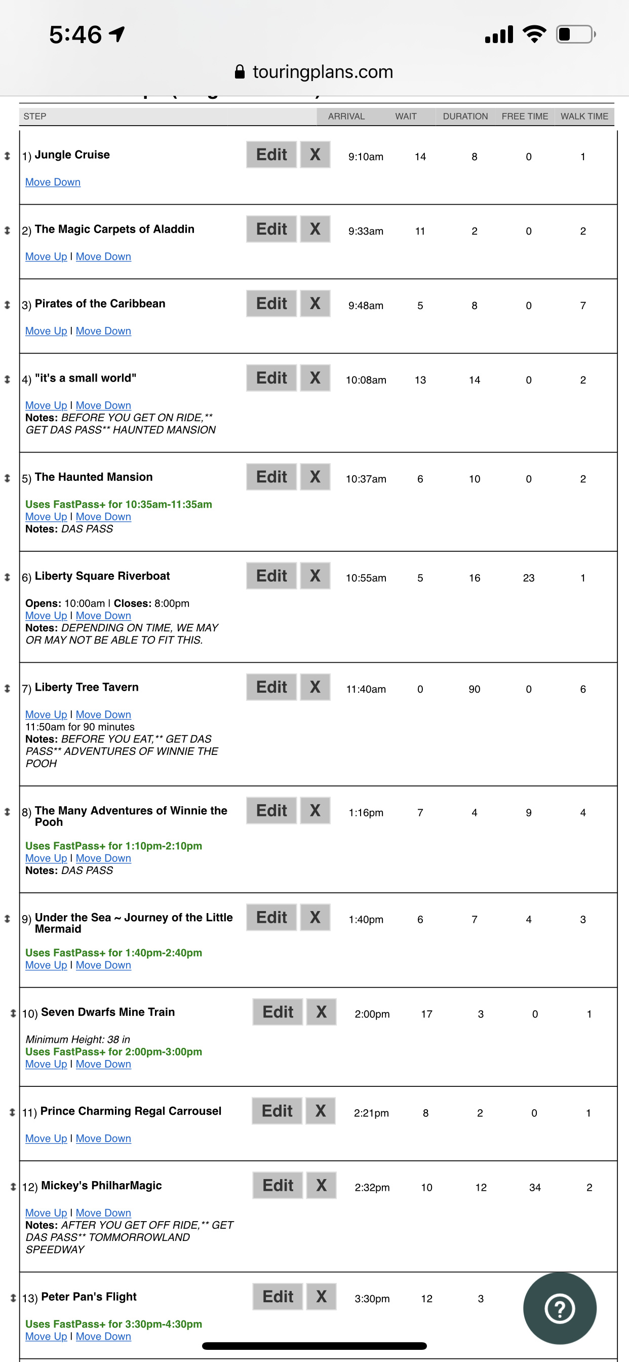 Can anyone look at my touring plans for magic kingdom and tell me if this is good or not? I know the exact times can be broad hour to hour. So this is just estimates. We are using a DAS pass for a couple things but they will be marked DAS pass. Please see the notes too. Will have a runner to get the DAS pass that way the whole family doesn’t have to go. Any help would be appreciated.