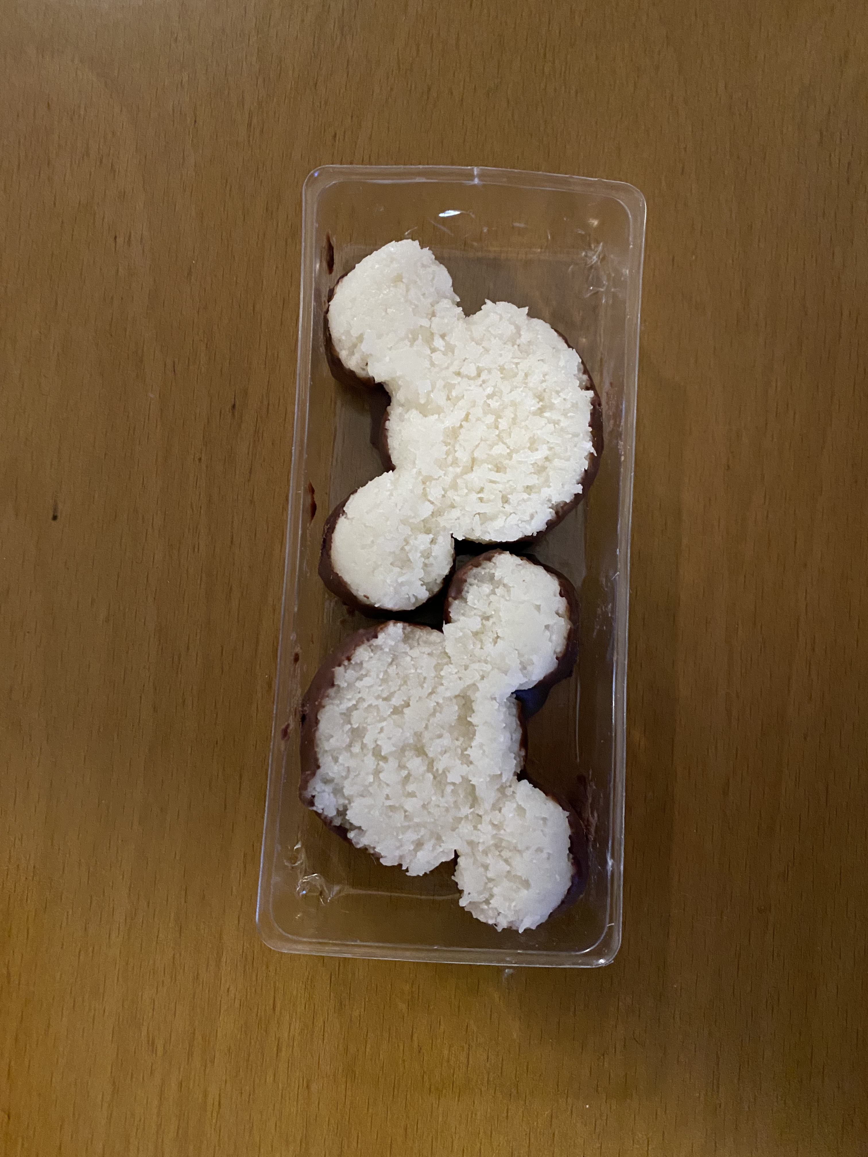 Last night I bought these coconut patties. I think it was @sanstitre_has_left_the_building who gave me the idea to try them? (Sorry if tagging you is not welcome - I’m not trying to flaunt my vacation to those who are unable to come here.) Anyway they were delectable! Lots of coconut and not much chocolate, in case that is relevant to anyone. They were only $3 for two (dirt cheap by Disney standards.
