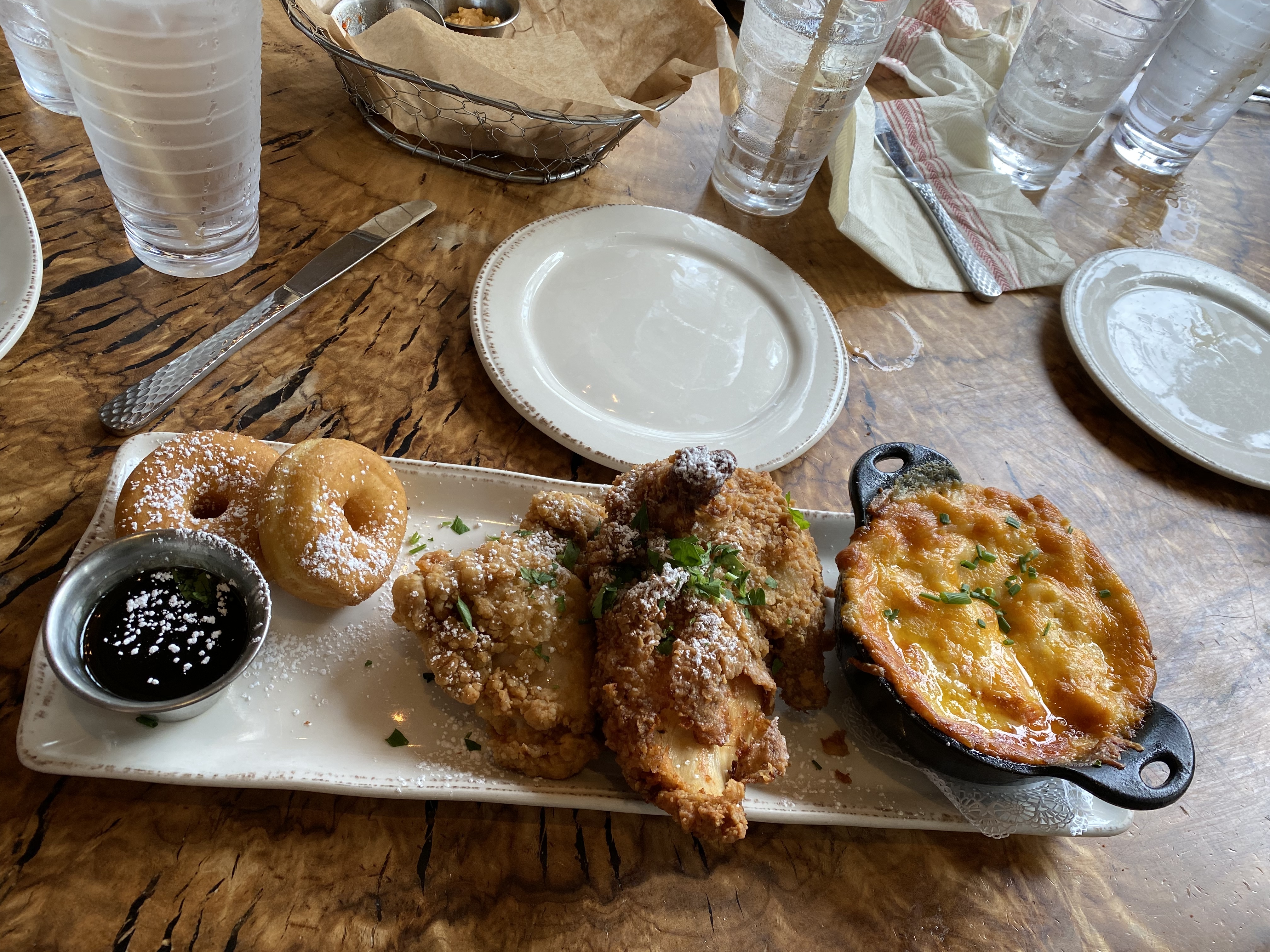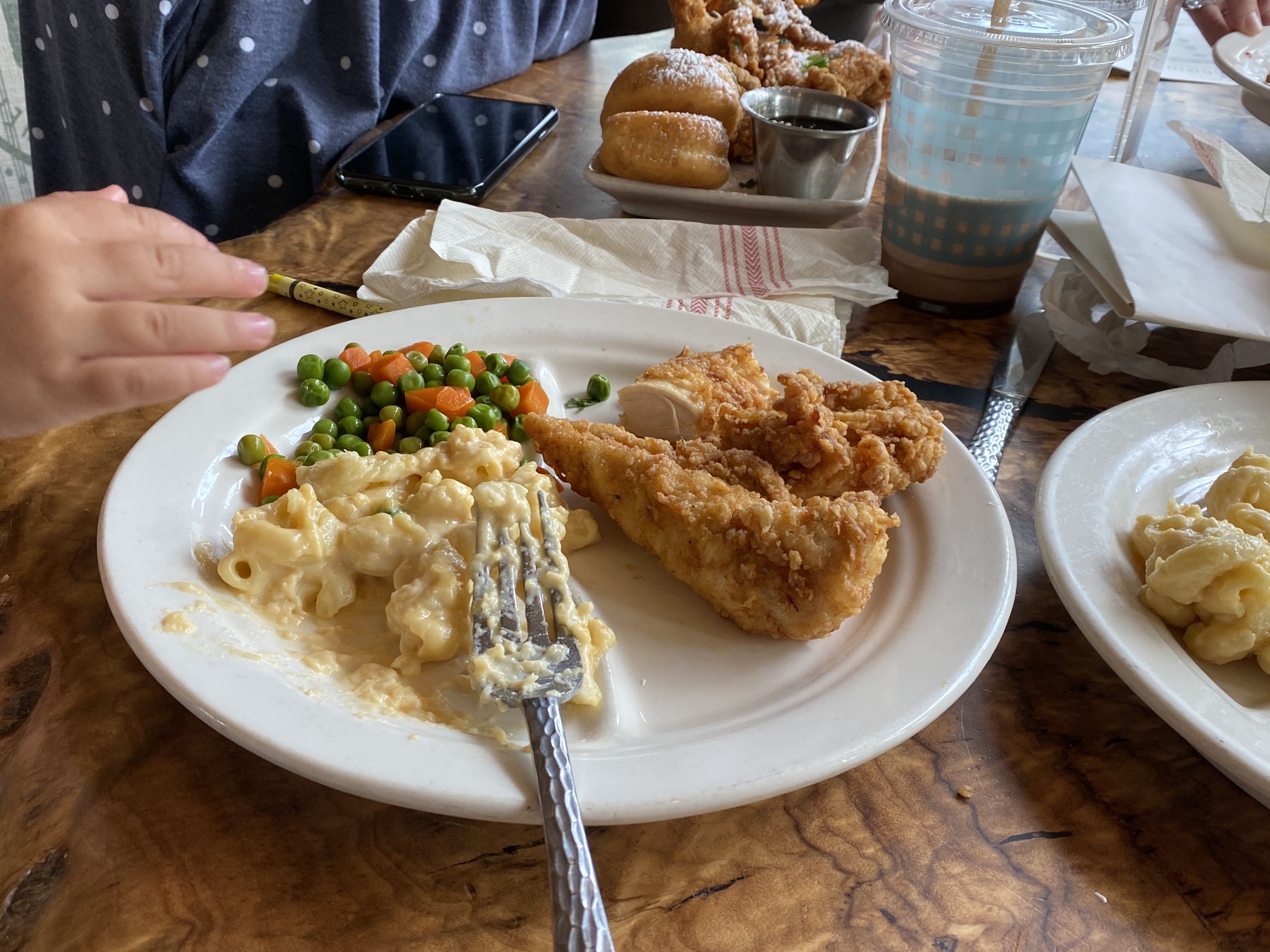 We discussed it and if we were going to order over, we would have gotten Mac & cheese, sweet potatoes, and two fried tenders each instead of the full fried chicken plate (we’re tenders people I guess