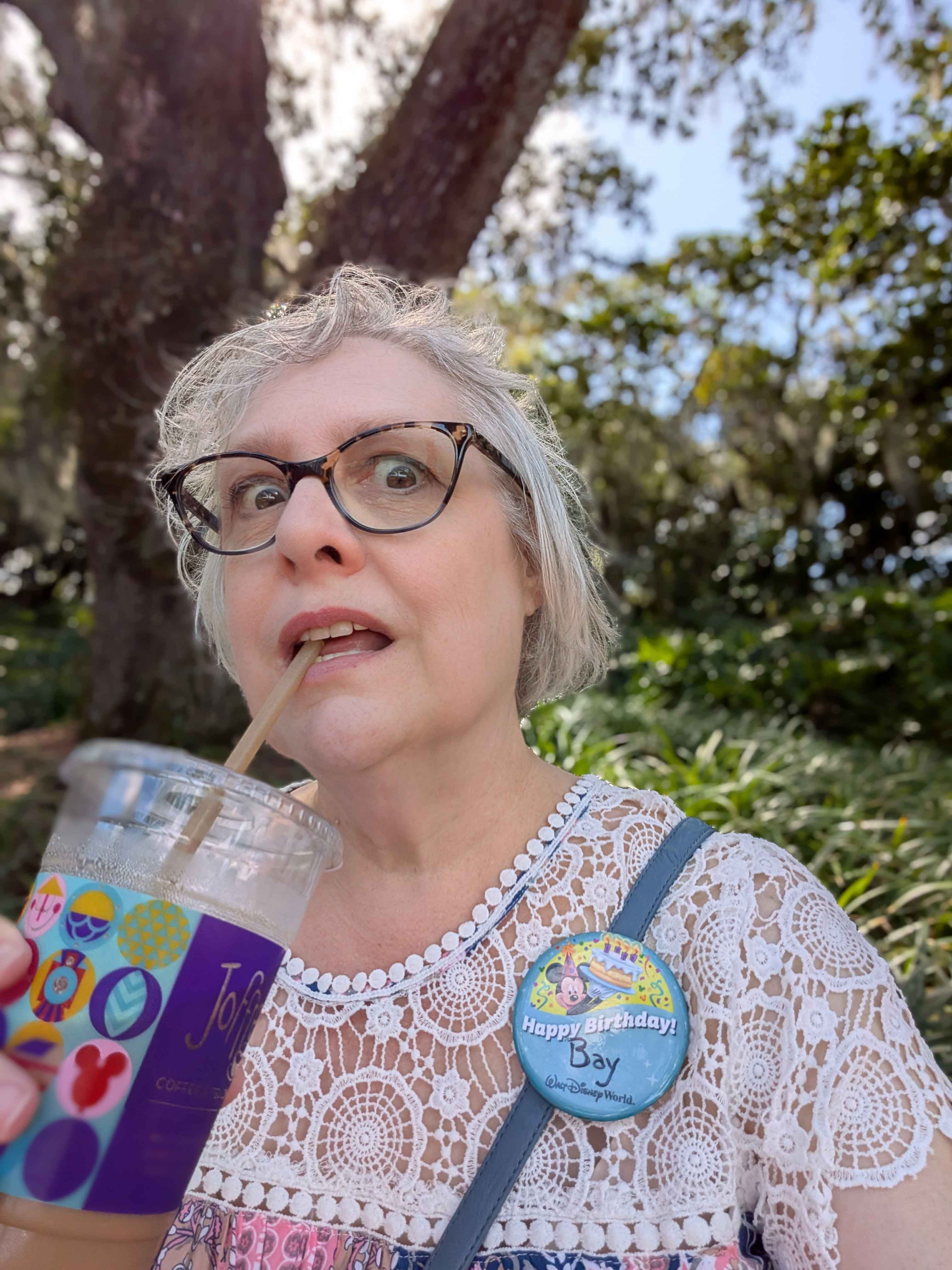 The bus driver for this trip to Epcot was another fabulous one – he noticed my birthday button and made the whole bus wish me a happy birthday – and they *did*! This was turning out to be another magical day in Disney World!