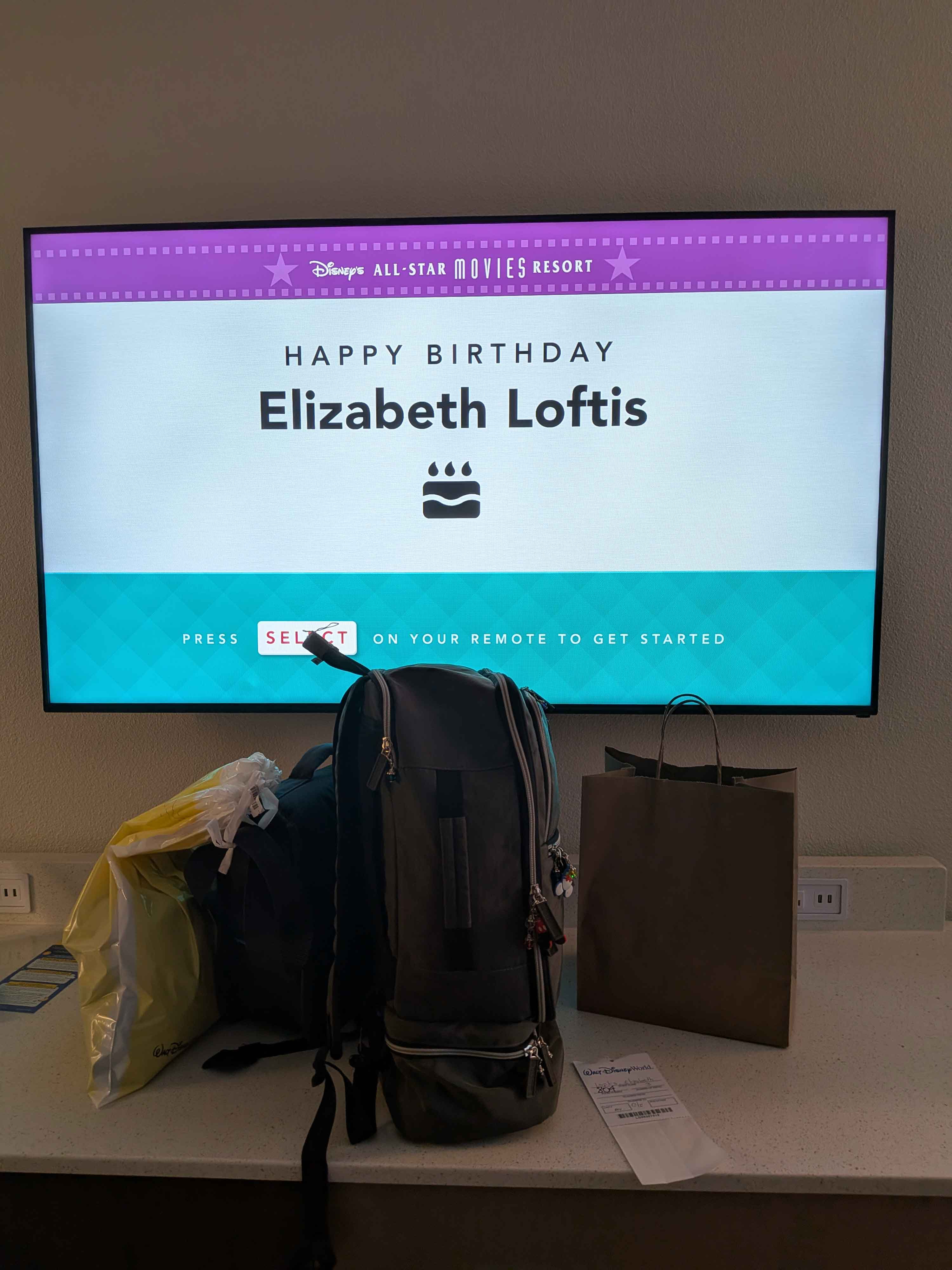 I don’t remember if I’ve mentioned it, but I went to Disney World for my birthday a few years ago, and they were out of birthday buttons. I asked everywhere. No one had any buttons. And… the actual day of the birthday didn’t go well. We went to Hollywood Studios, and we bought the – what were they called? Genie+ or something? I don’t remember. You had to wrestle with your phone about everything, just like right now. It was awful. There was line cutting everywhere, and the Rock’n’Roller Coaster broke down while we were in standby, but they didn’t let us out. It was just a bad day overall, much less a disappointing birthday. Even California Grill was a bummer. I’m so happy that this trip was going so much better. All I had to do was sacrifice a clever Madame Leota quote on a t-shirt to the Zazzle gods, and voila! Nice birthday weekend!