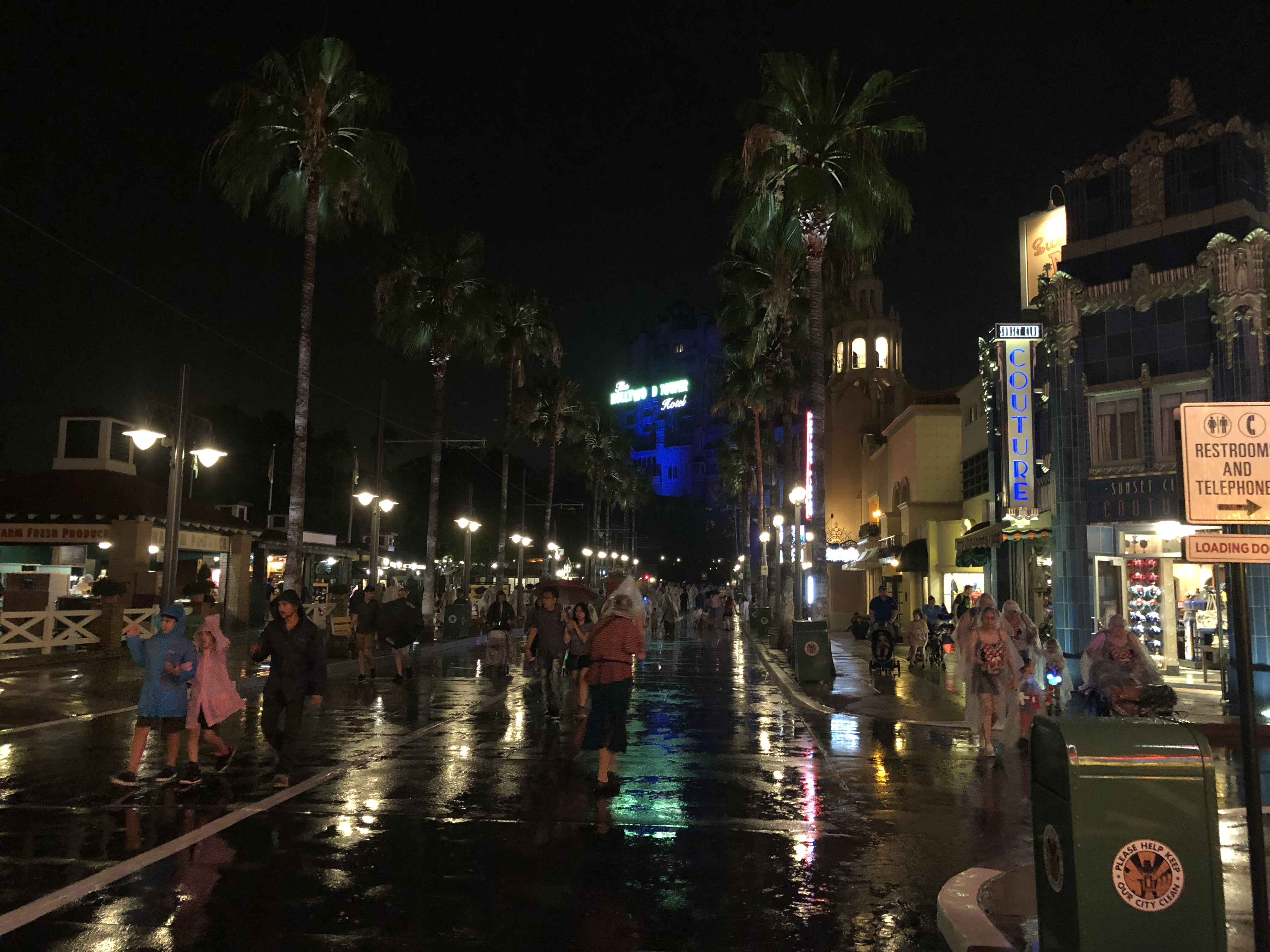 But I need not worry, as mother nature was all “I gotchu fam!” and decided to open up the skies. We sat huddled under our ponchos waiting for the rain to pass, but as I checked my phone for updates, I saw that this rain wasn’t to end for another hour or two. We sat there for just shy of 40 minutes before we both had had enough and it was time to leave. As we got up, I asked a roaming cast member how likely it was that the show was going to be canceled for tonight and he acknowledged it was probably a sure thing. He said don’t throw the tickets away though, as we can use them for up to 5 days later and get the same seating. Happy to hear that (and glad I scheduled two attempts at this show for the week), we made our way out of Hollywood Studios, with me taking a few parting pictures in the rain.