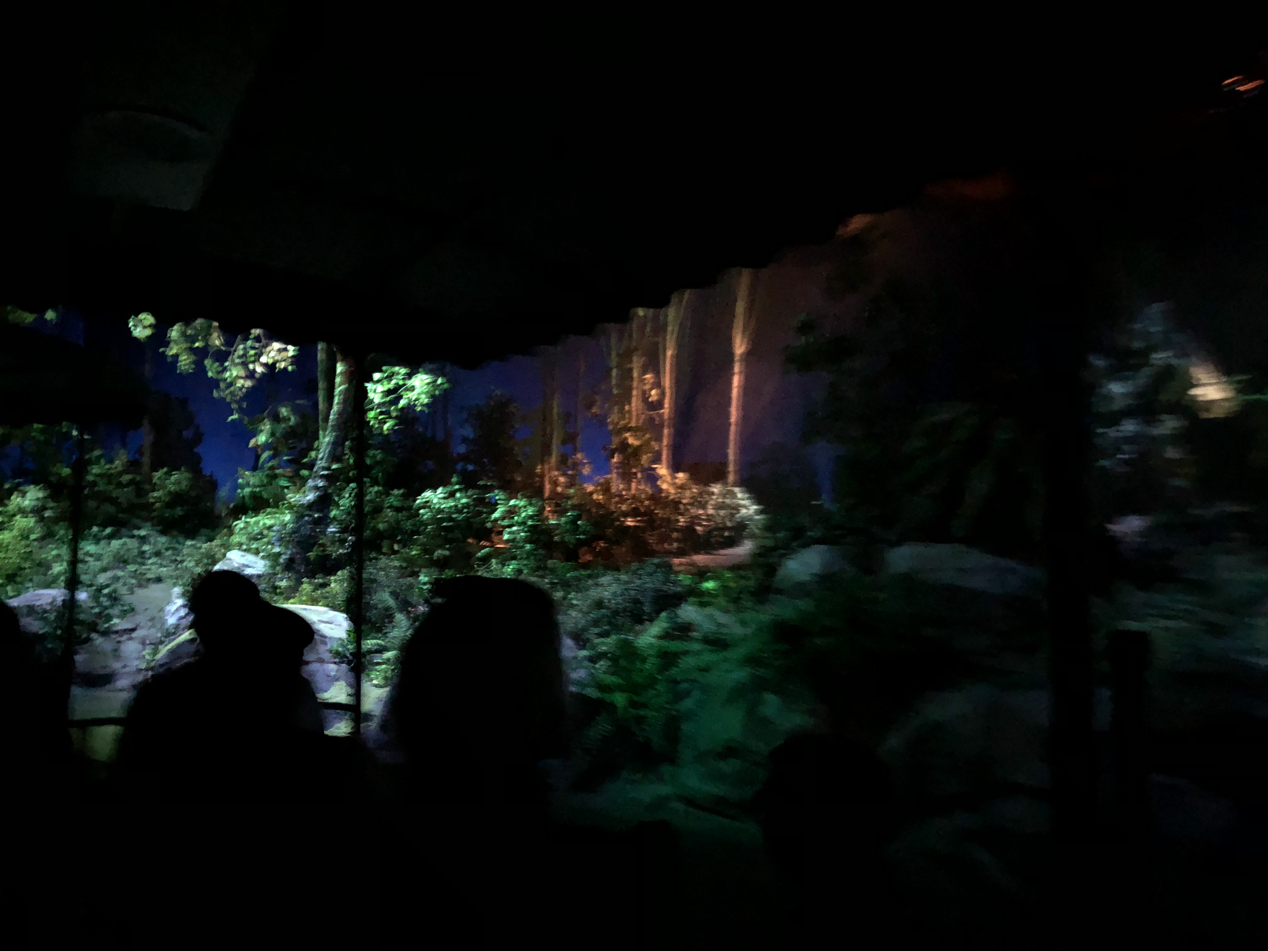I wheel mom back a little ways back and show her the indoor fire pit, trying to look for a ramp down to the area or to Boma itself, but we ended up not finding one. What we DID find was a guy sitting in front of the fire pit and what looked a tiny blue lemure on his shoulder, wagging its tail. The way it moved didn’t seem right and I concluded it was a puppet, but I couldn’t figure out why they were there. Not knowing if it was a cast member or just some… “out there” guest, we walked past silently.