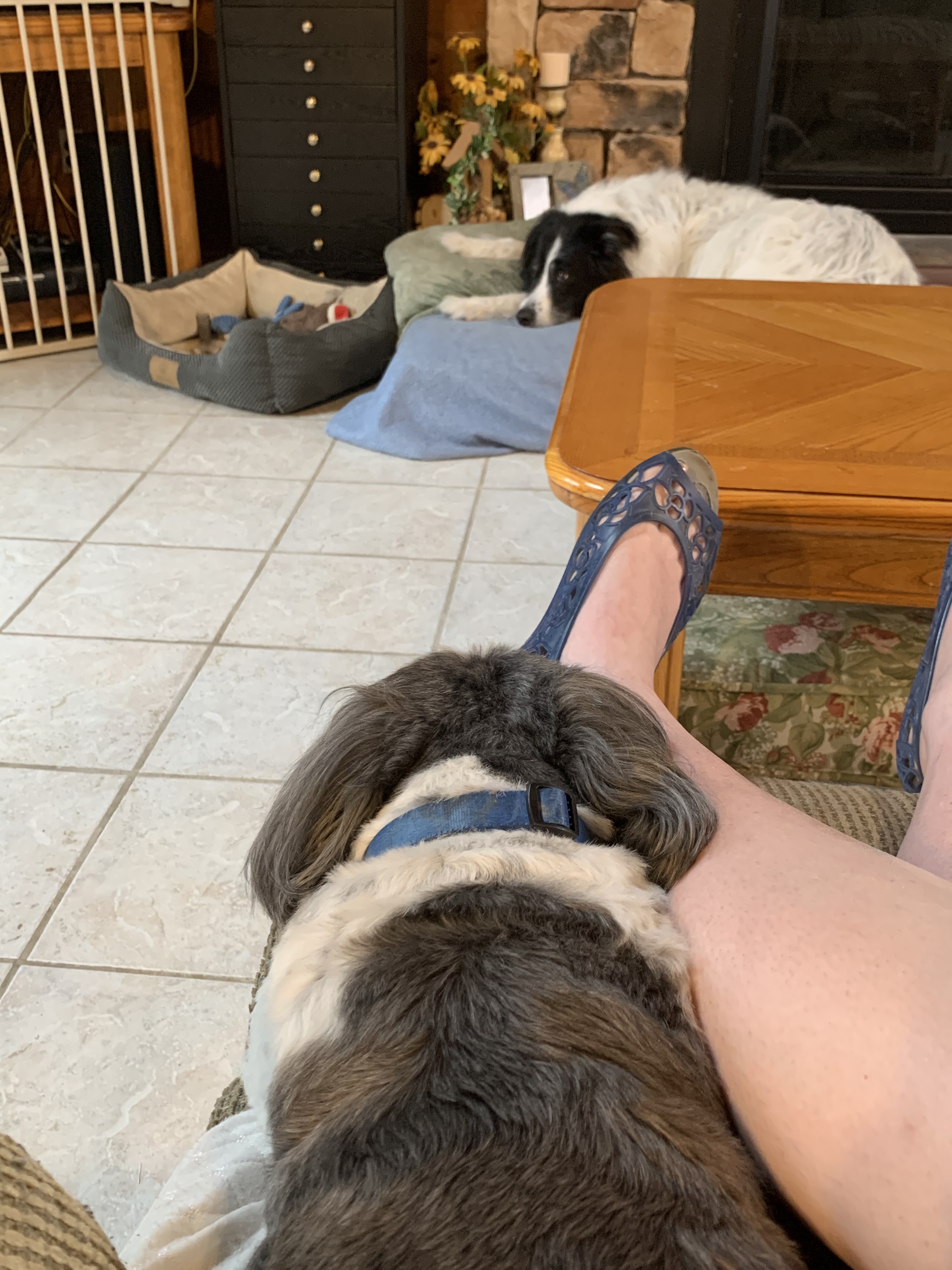 When we got back from two weeks at WDW my girls would not stop jumping on me. I’m down to two dogs which is the lowest number of dogs I’ve had since 2016. I have had in the high teens of a number of dogs at times (due to having litters of puppies plus 6 or 7 adults or teenaged dogs) FYI I don’t breed I’m just in rescue so I take the knocked up ones off the streets and give 'em a safe place to raise their pups, spay them and find em all homes! And I only had that number of adult dogs because people return puppies and I keep finding em loose on the streets and can’t just leave them there. ha ha ha