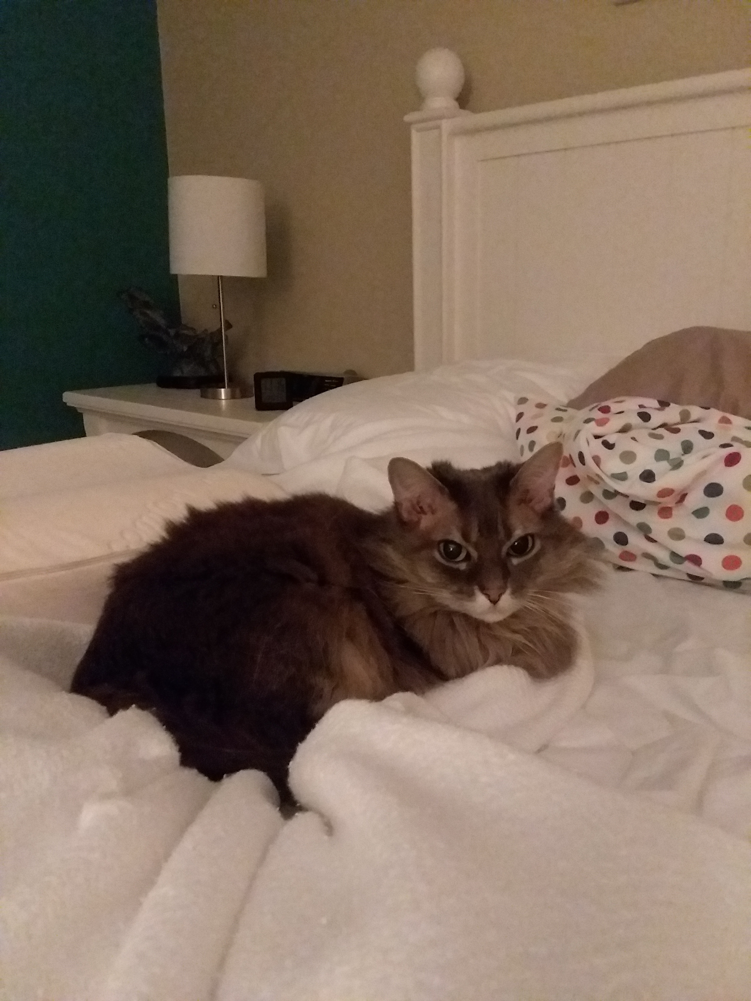 This is the princess waiting for my mom to go to bed where she cries until my mom pets her to sleep.