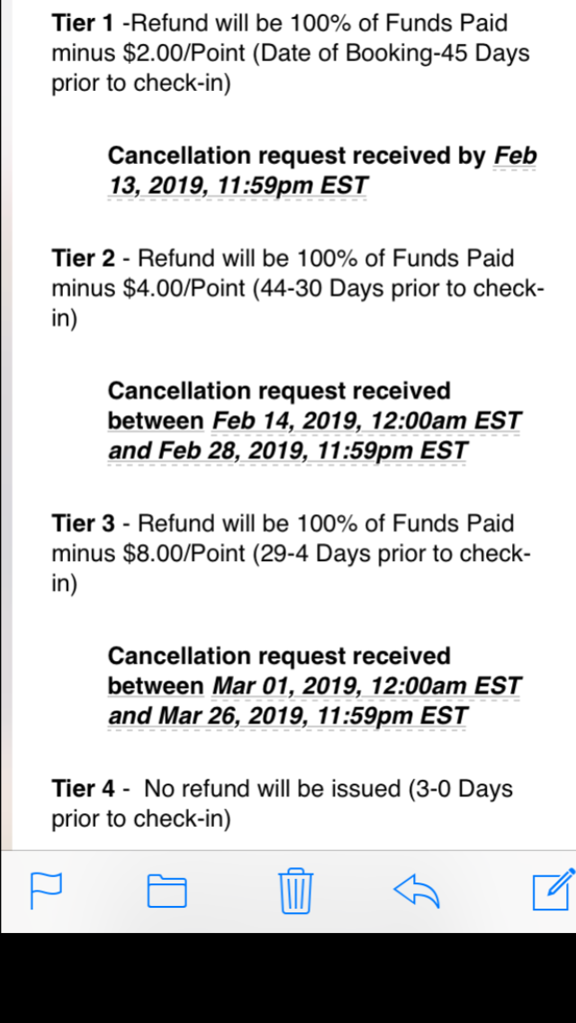 You cannot get all of your money back if you cancel, but can get most of it back if you cancel 45 days or more before trip. In my case $2 a point would be $186 since I rented 93 points. So I would be out the $186 plus the $175 for the insurance, so $361 of the $1849 I paid if cancelled more than 44 days out.