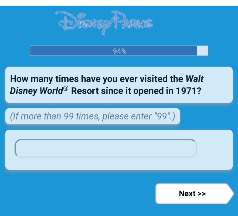 Thanks again! Ours is the week prior to yours so just trying to gauge who Disney is surveying based off of timeframe