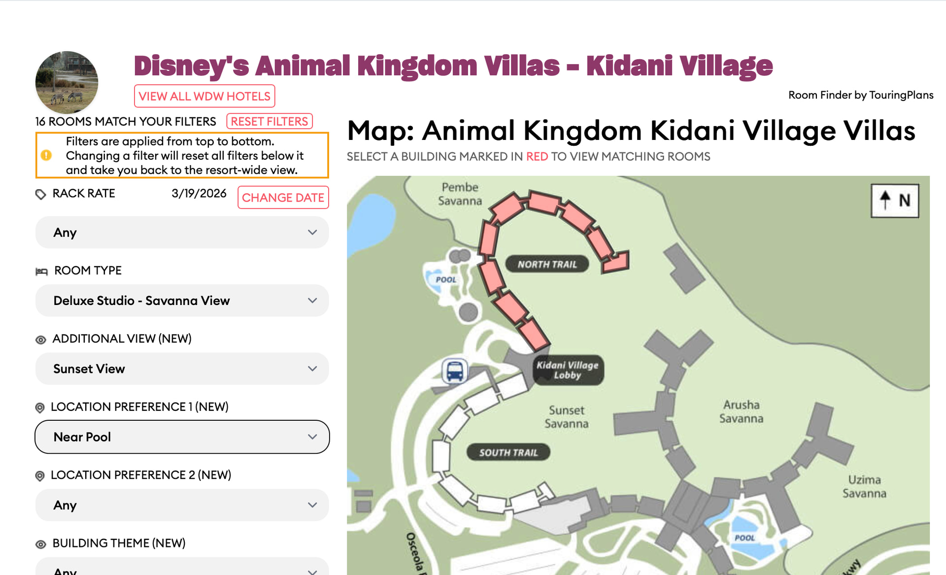 Attaching before and after screenshots. Examples of rooms that should match both Near Lobby and Near Pool are 7616 and 7622.