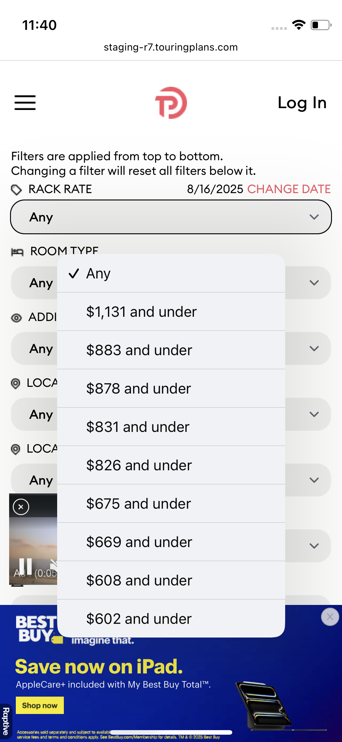 The Rack Rate categories for WL are plentiful and strange, some with only $5 difference from the adjacent categories. I would think you could collapse and standardize across the board for all hotels, picking ranges that make sense to people - e.g. $199 and Under, $200-499, $500-999, $1000-1999, $2000 and Over (and graying out categories that don’t apply to certain hotels, like graying out the $199 and under for WL). Unless the very bespoke rack rate configuration is meant to match with Disney-tracked data points.