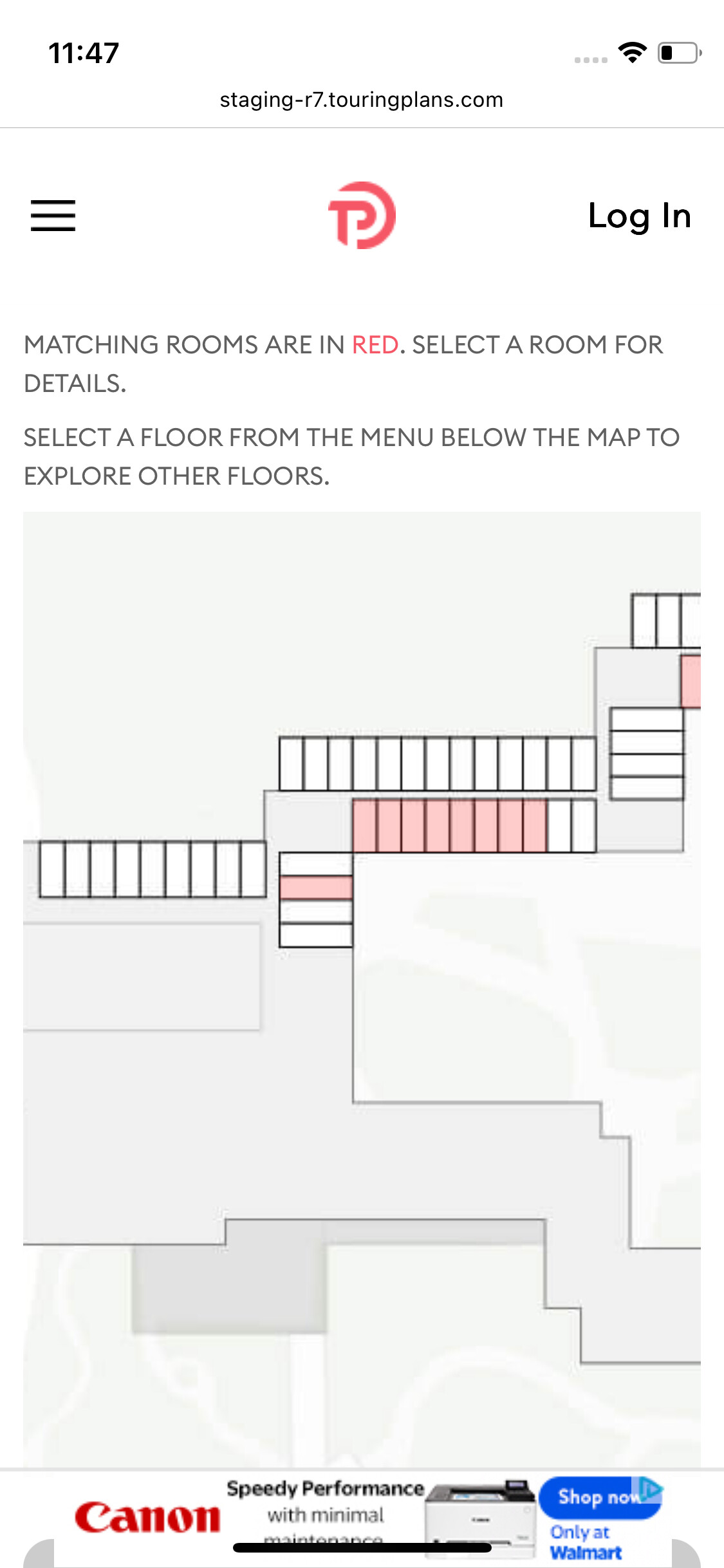 I would also prefer the Floor dropdown display to appear above the map rather than below it when viewing from iPhone. Maybe just below the italics that say “87 matching rooms in this building See Floors 2, 3, 4, and 5”, put the floor dropdown to select floor and keep with the text that says “20 matching rooms on Floor 5”, and then follow with the rest with the info about matching rooms in red text and the map.