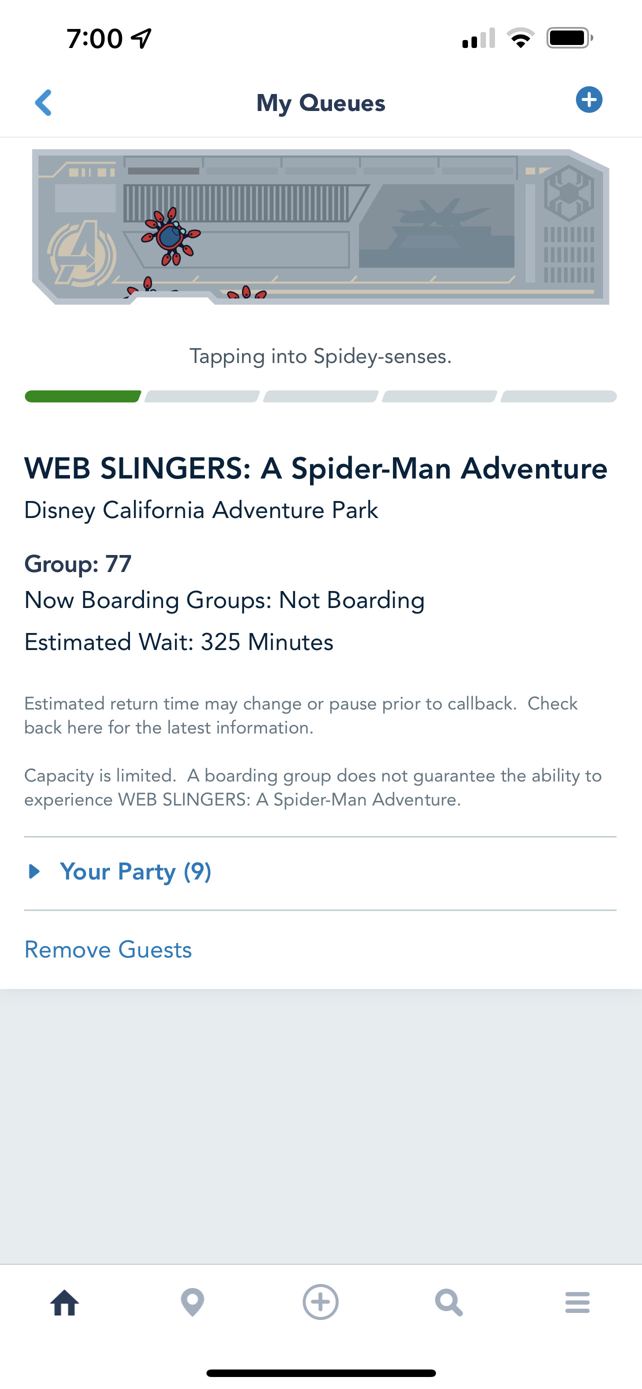 Yesterday we rode IC, GotG x2 for both version, TSMM, Webslingers which also broke on us so we got a fast pass we used later. RSR which broke twice once on our way and another time while we were deep in line and couldn’t get out so ended up waiting an hour. There was no single rider open. :-(. We rode Mermaid and Monsters Inc too. And saw the updated PhilharMagic which was fantastic. During the party we did Mad Hatter, Cruella, Oogie Boogie, Agatha and Sid Treat Trails, saw the parade and walked thru Villains Grove. We did not have time for the other treat trails, Soarin or rapids.