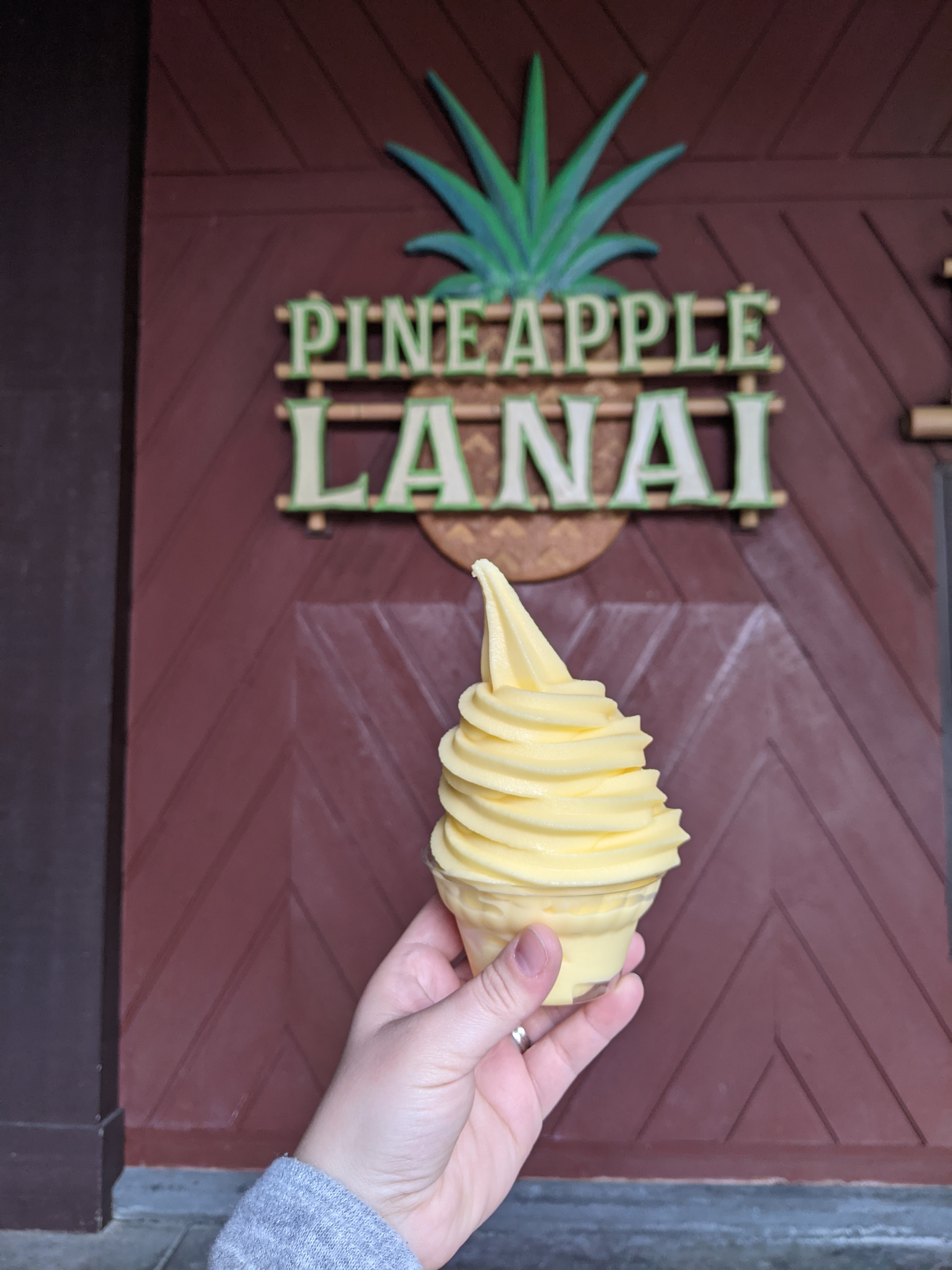 The cast members at Pineapple Lanai gave us our dole whip for free. It was a sweet bit of magic. Initially, I thought she told me to swipe my magic band. Her mask muddled what she was saying and I think DS4 was talking at the same time.