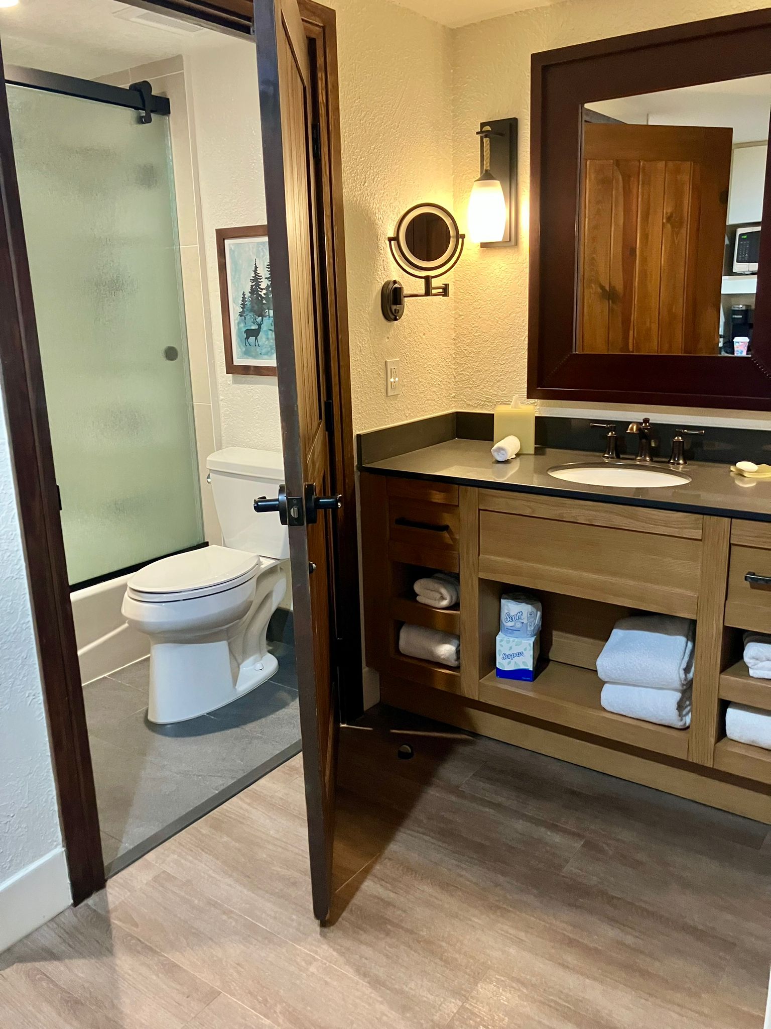 I arrived at the resort before noon and asked if a room was available. The CM made a call and then said that they could see I had made a specific room request, but that the requested rooms were not available. They asked if I would be ok with another room, and I confirmed that I was (I wanted to take a midday break and was delighted that any room was available). Looking back on my request now, I see that 1516 was actually on the list of the room numbers I mentioned as a possibility (if a high floor with a view of the lake was not possible). It was conveniently located immediately off the BR lobby/walkway to the buses. This meant that the small patio was not particularly private, and I did not use it. I did sit in two of the seating areas in the beautiful lobby (breakfast and coffee in front of the fireplace, and lunch in some big comfy chairs near large windows). Loved this resort and its amenities!