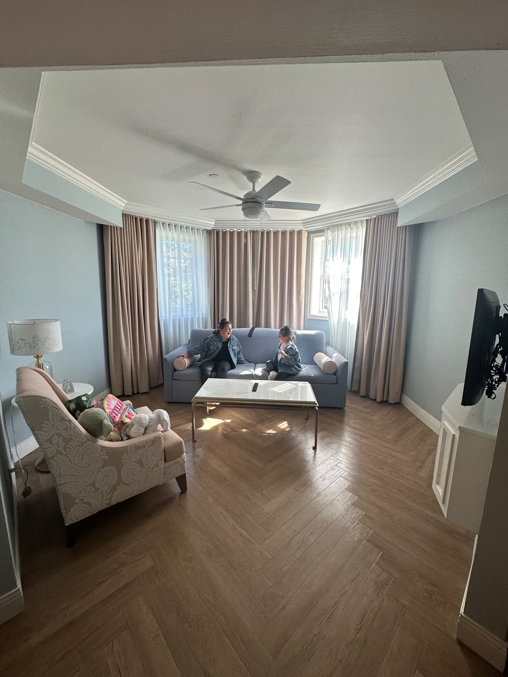 So we get to the GF from the cruise super early at like 11:00am and the already had our room ready. We got Sugar Loaf 6420. It was the same room on the top floor facing the pool. Huge room!! Top floor so it had vaulted ceilings and then the entire offset for just that room make for a large seating area with couch and chairs and its own tv as well. Very large room. Con is no balcony if that is on your wish list. But for us, it was perfect and just a quick out the doors to Gasparilla or the lobby. Pics below.