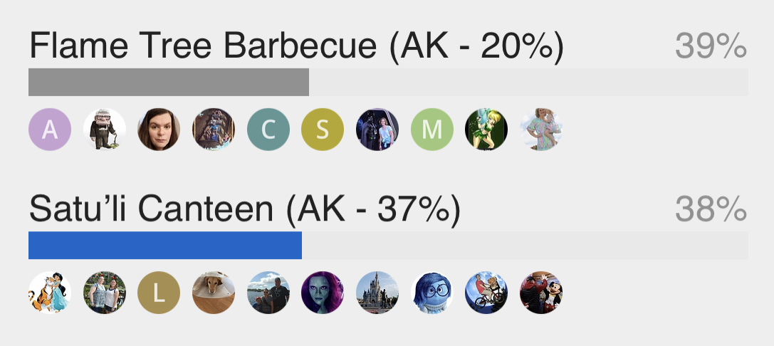 Here is the link to Round 2. Everything that got at least 15% moved on to Round 3. This time, only one restaurant was eliminated - Capt. Cook’s! (Sad trombone