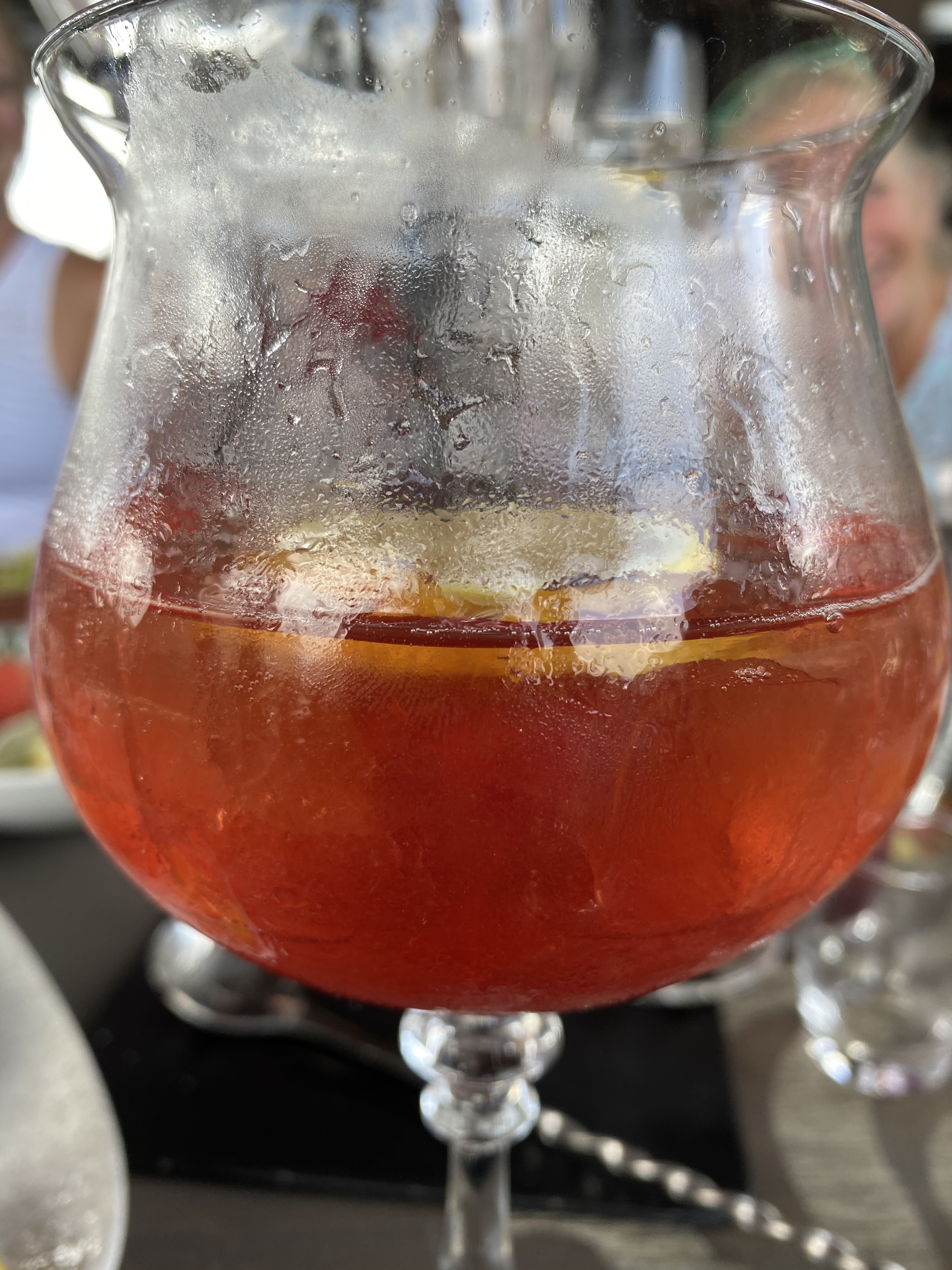 So I went to Three Bridges this afternoon with some friends. They have a special offering: Sangria University. You get to try four different sangrias (regular pours, not tasting pours) and then make your own. So basically 5 glasses of sangria. And also me of their apps; today it was guacamole and chips which was phenomenal. I had a fun couple of hours and got to love on some people I’ve been missing.