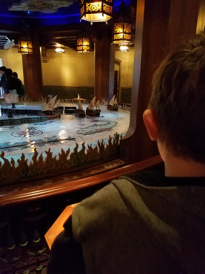 We had pizza near the Venice canals and then went all the way back to Arabia to ride the double decker carousel and then decided to end the day with the Little Mermaid show. Up to this point we knew there was something to do with Ariel around the park but we hadn’t seen much. We went into this cave opening and found an entire new universe that I didn’t expect for one second. It was loud, bright, colorful and jam packed with kids. We essentially found the “carnival” part of the park and it was CRAZY amazing. We waited about 30 minutes to see an absolutely excellent show that was more elaborate than anything I have ever seen in the states. The rig that Ariel performs on is amazing and I loved every minute of it. We wound our way back through the throngs of people and to the front of the park. It had been crazy busy but there was so much space to work with that it never got more overwhelming than it did when we were in the initial line to get in. I was very happy with the experience and know that I will never ever be able to complain about a long line in WDW again. We now know how to deal!