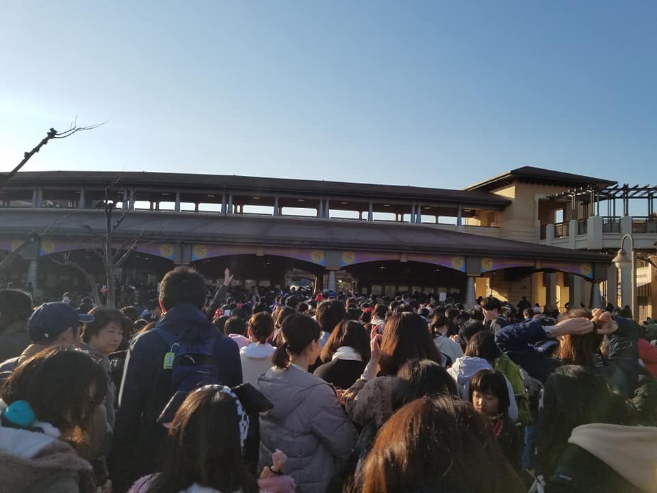 We checked into the Hilton the first afternoon and got into our room about 2 pm. We knew that we could get tickets at the hotel as long as we had cash to use as payment. We purchased a “twilight” pass for the first day at Disneyland (3 pm- close on Saturday) and a full day for DisneySea the next. It was very cold and windy and I believed that the crowds would be slightly lower because of the weather. Alas, I was so, so, so, so, so, so wrong! The line to get in at 3 pm was not terribly long but no one was exiting the park at all. There were so many people at the entrance and I knew that we were going to be in for an experience that we had never seen at any of the American parks. Plus, we had checked the Disney app we downloaded and knew that almost all fastpasses for rides were gone for the day. We were going to have to do standby for everything.