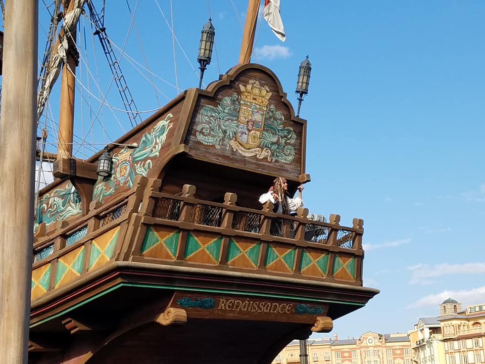 I wish we could have explored more, but we were getting so tired and hungry and we needed to head the Hangry meltdown off as soon as possible. But before we left we ended up getting to see Jack Sparrow as he climbed aboard the ship and started to play and take pictures with everyone! Yay!