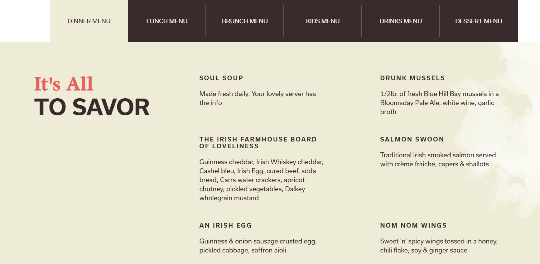 I only see the cheese on the brunch menu when I look on the restaurant site.