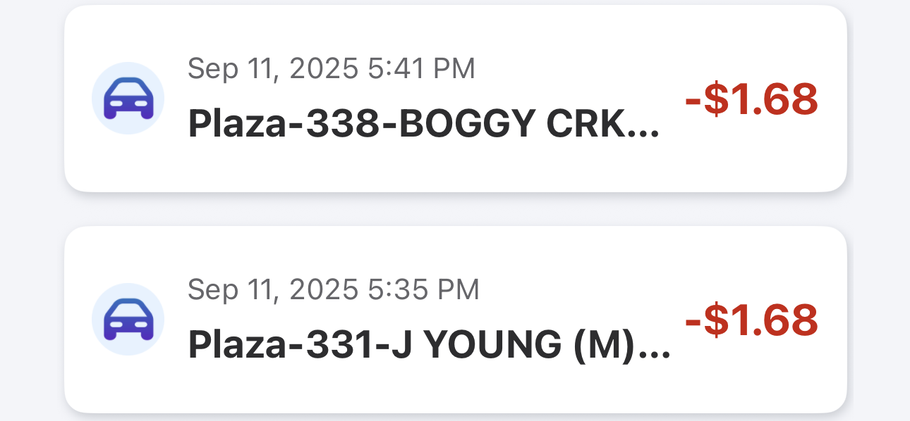 Did the toll charges recently go ? I have use gone with the charges and it has been about $18 a trip recently total.