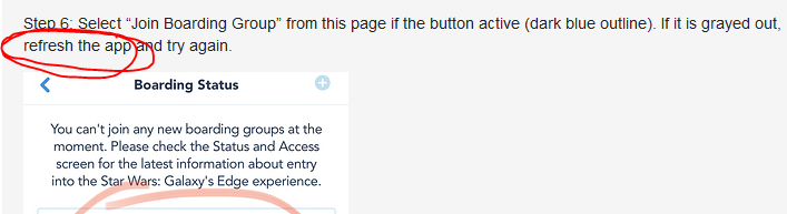 I have read it - what I mean is on the main page, you have the option of “My Status” or “Join Boarding Group” but before the park opens, Join Boarding Group is greyed out. When Boarding Groups become available to book, does the page automatically refresh so that we KNOW they’re available to book, whether we’re going through Join Boarding Group or My Status? Or do we have to keep refreshing that page waiting for it to go from Closed to Open?