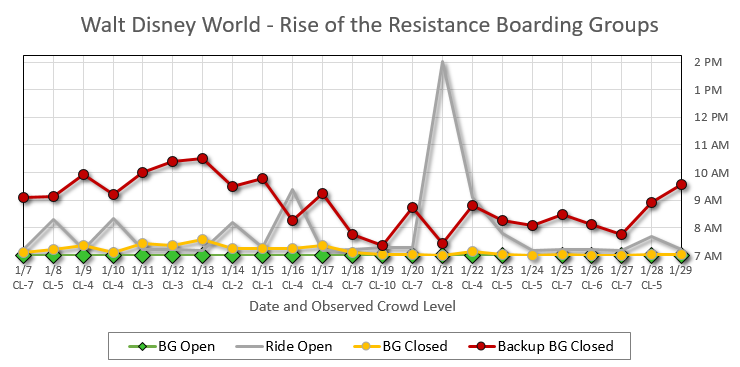 I just saw this too. We will be there this Saturday and I just tried at 9:35 eastern time and could still get a backup boarding group. Do I really need to have all 6 of us at the park and scanned before 7 am to make sure we can ride the ride? (I am still assuming so).